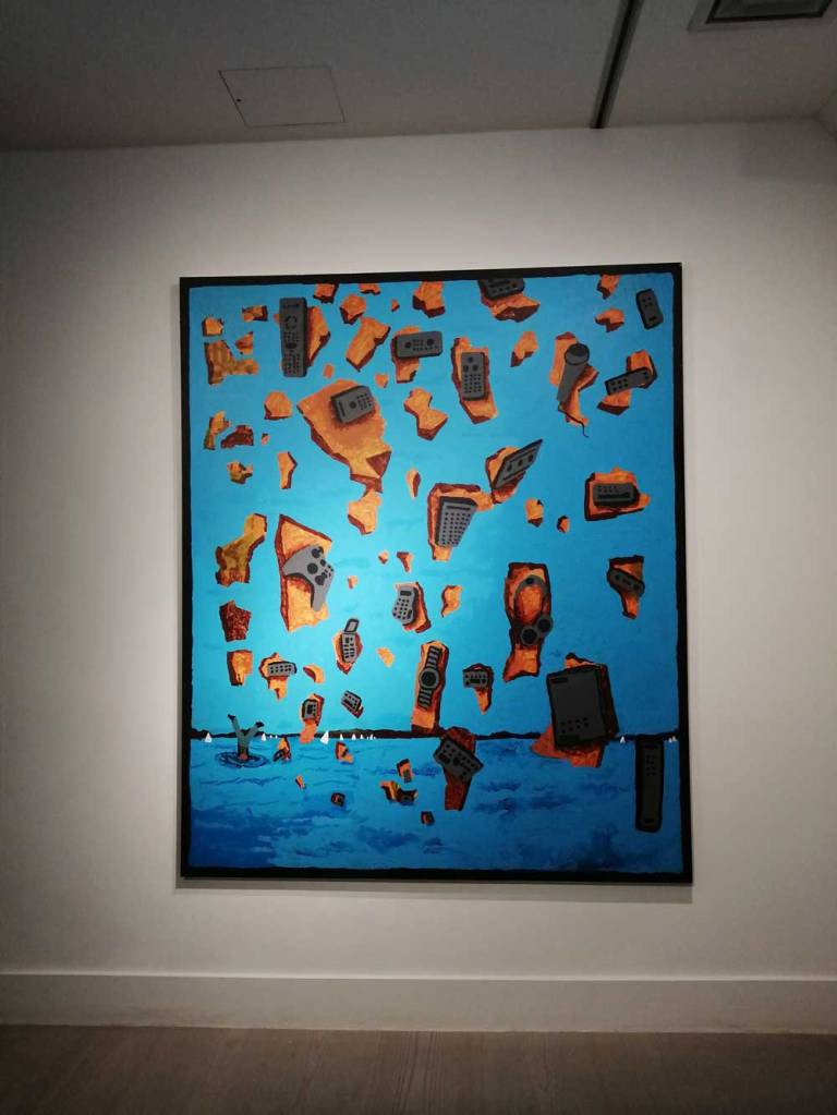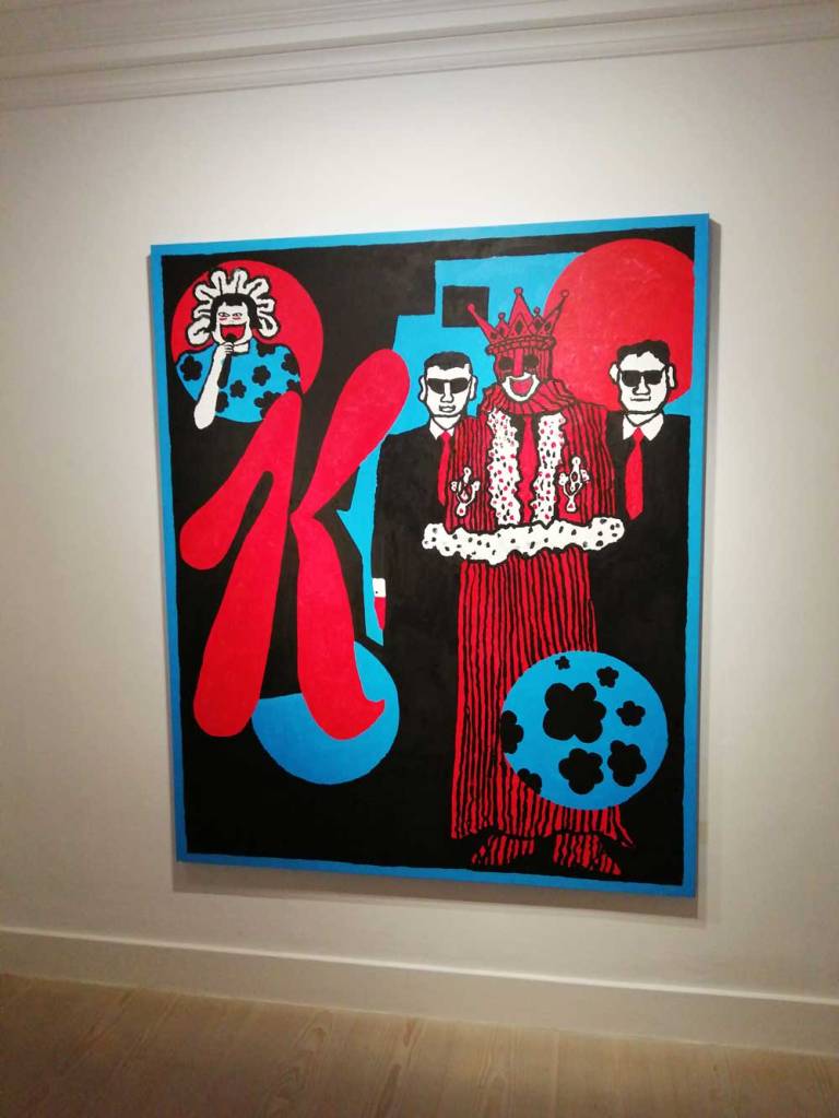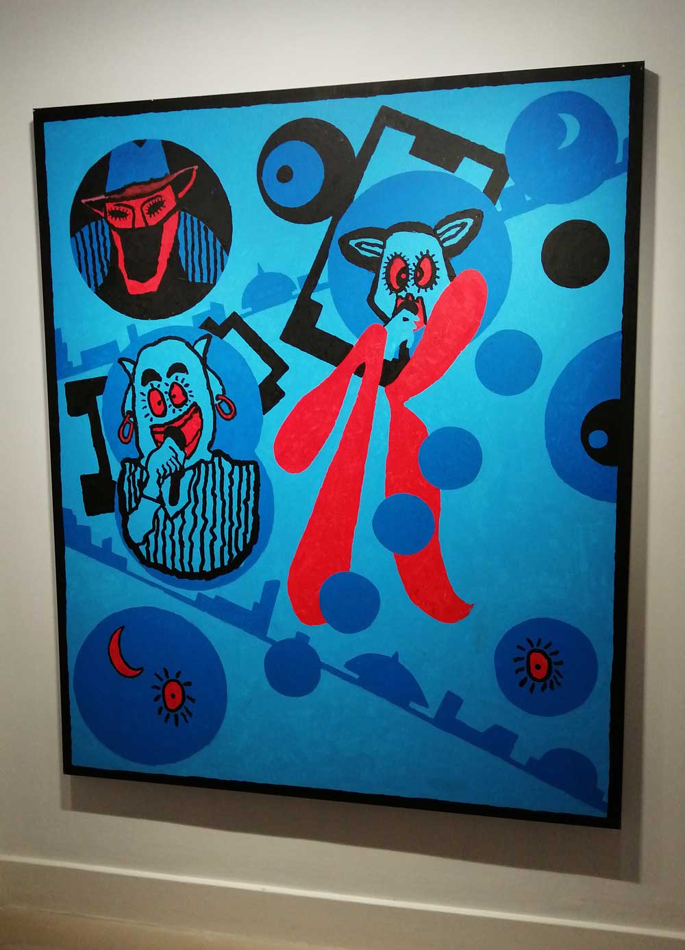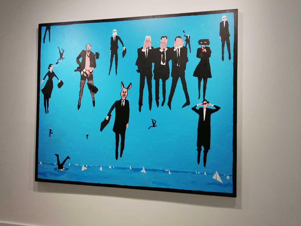 The paintings are the things that grab rather than the drawings, the Special K humour, the bold colour, the attitude. Derek Boshier is still an interesting exciting artist. One of the early British Pop Artists – he was part of that infamous Ken Russell Pop Goes the Easel film back at the start of it all, now in his 80’s and still very much a current artists taking on current things (rather than just referencing the fact that he’s worked with Bowie – he did the cover for Lodger – The Clash, The Pretty things and more). These new paintings looked exciting on line, they really come to life in the flesh, there’s a sense of situation, time, place. Feels good in the room with them all, this is now, there’s a (dark?) humour to it, these painting are playful, almost punk-edged, K-Pop fuelled and very much tuned in. This is what we want at 10am on a Thursday morning, art excites, painting excites, that line where sea meats sky excites, the style excites, pop excites, one of the original pop artists playing with K-pop’s now excites. One with it all, on with it all! (sw)
