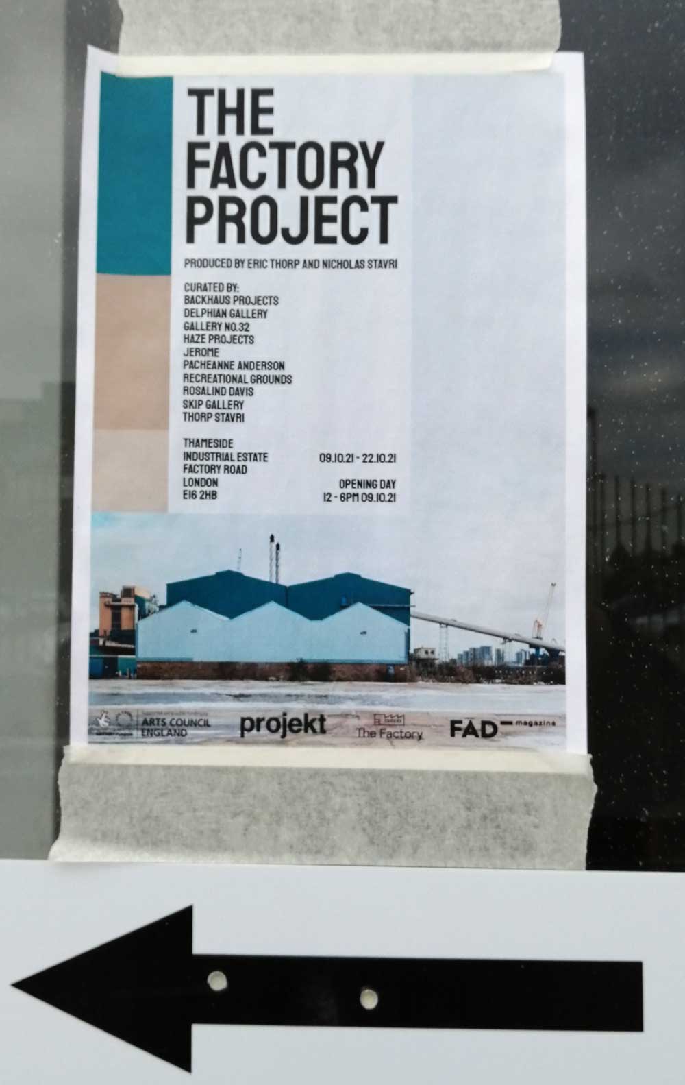 “Intended to complement and complete London’s Frieze week, The Factory Project takes place at the monumental Thameside Industrial Estate, a massive warehouse and yard complex in North Woolwich, Newham – a short walk from London’s City Airport and nestled between the Tate & Lyle’s Sugar Refinery and the Thames Barrier…”