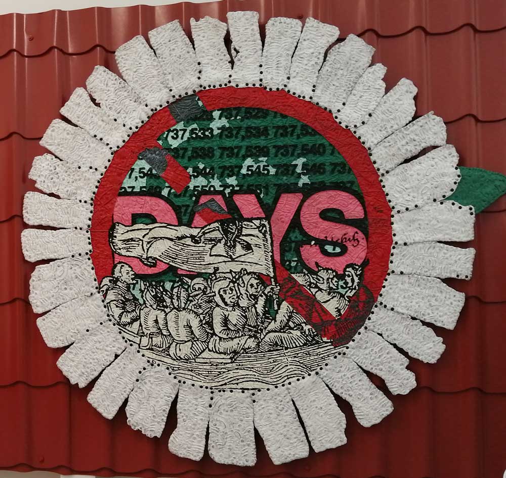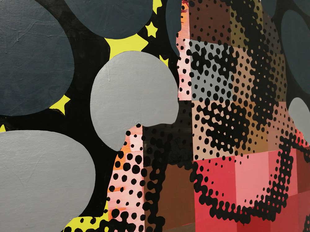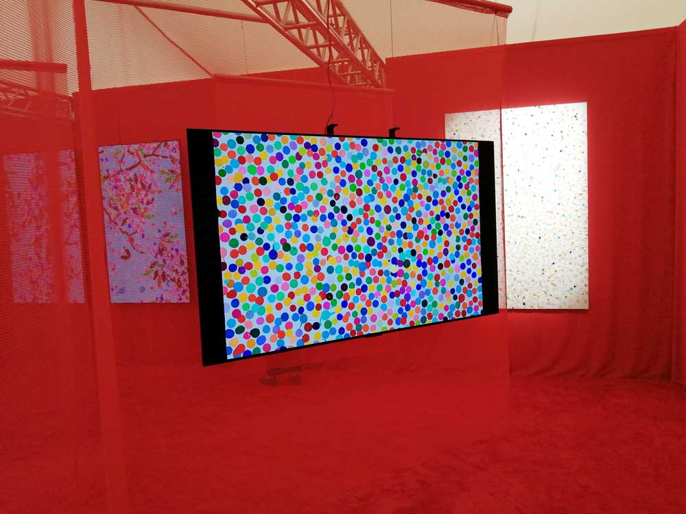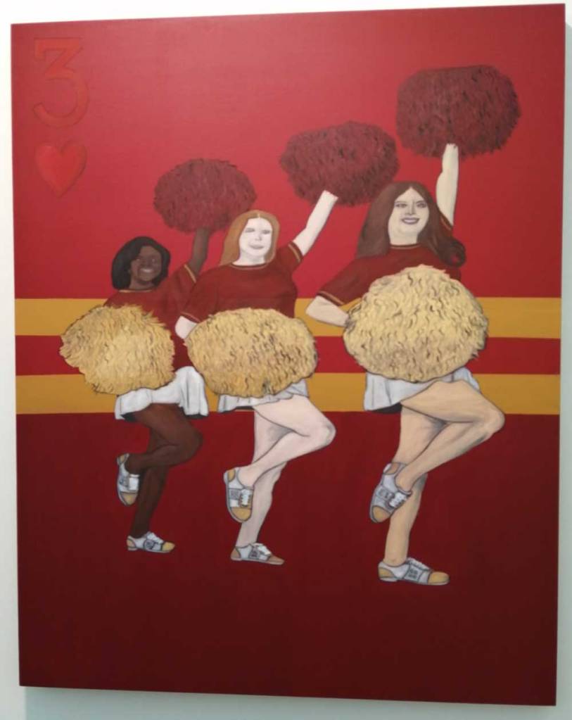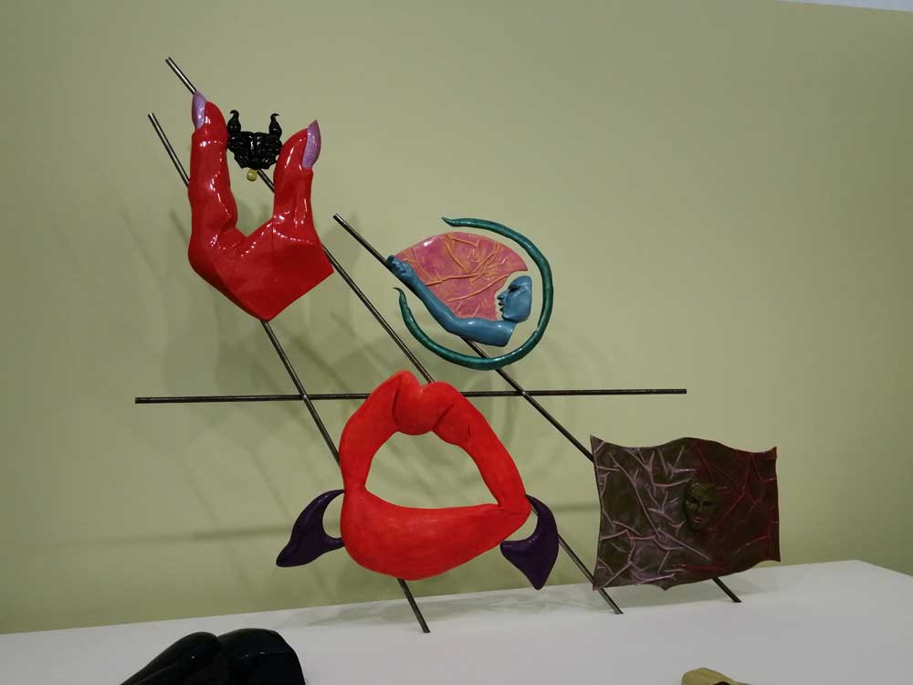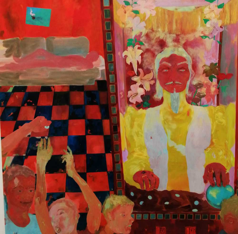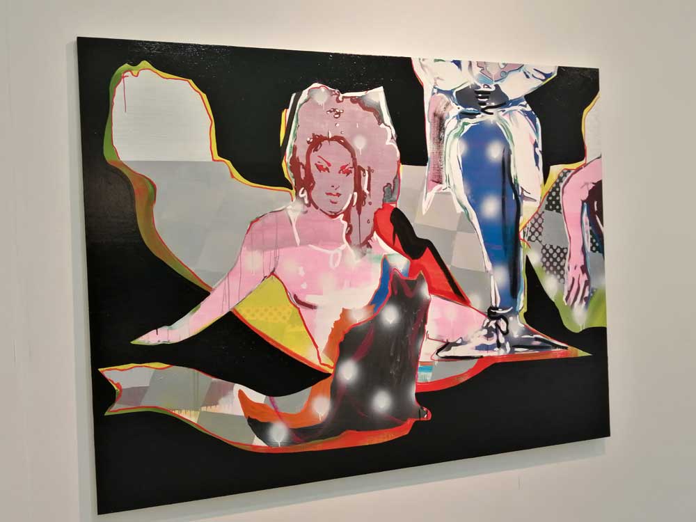 Yes, of course there’s good art, )there’s some bad art as well, I mean, a circle of old training shoes, didn’t we all do that in the first few weeks of art school and then cringe a couple of months later?) There are pieces that are worth your time, those Shirley Villavicencio Pizango paintings presented by Ginsberg Galleria (Lima, Peru), those Josh Faught textile pieces shown Kendall Koppe Gallery, Glasgow, rather liked Leanne Ross and that Me Time piece from the same gallery, and that big Hend Samir painting – Gypsum Gallery (Cairo), Liverpool sculptor Jonathan Owen was fun, Awol Erizku‘s Déjà Vu just needed a Tox 21 or a 10 Foot adding to it, some of those Pippy Houldsworth Gallery paintings and no, I’m pretty sure I didn’t see everything – yes I did see some very good art, yes, there was (more than) one or two exciting pieces, that very big Justin Caguiat piece, those Sabine Moritz paintings, nothing revolutionary, but I did enjoy them and those pieces from Mexico City’s OMR Galleria did make me think of Julia Maddison’s work – I do need to say it again, I never really see anything in here that’s better than what I find in the back street spaces of East London or Peckham or the artist-led shows that are getting harder and harder to put on.