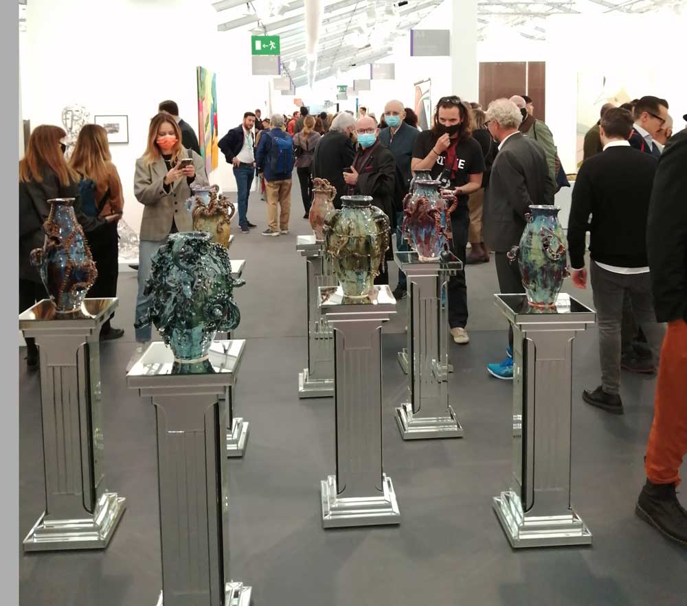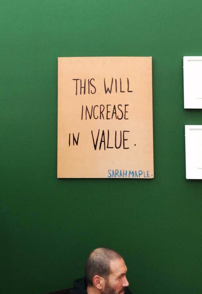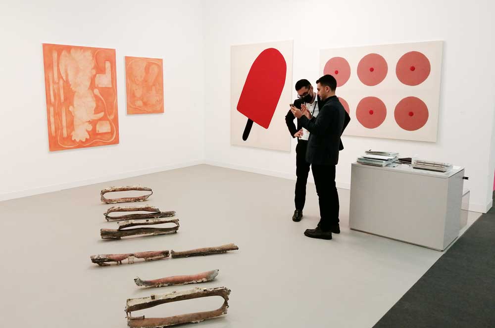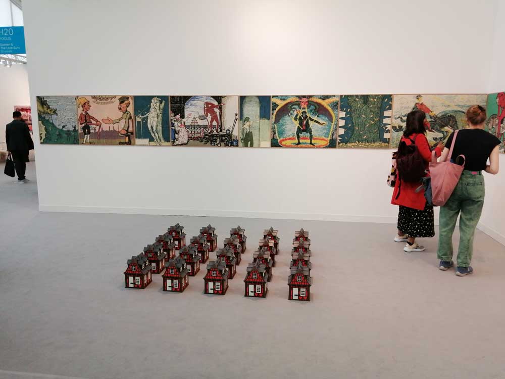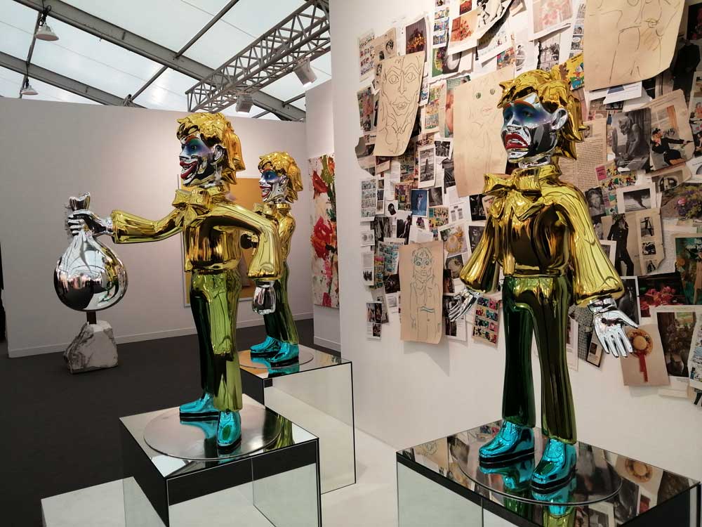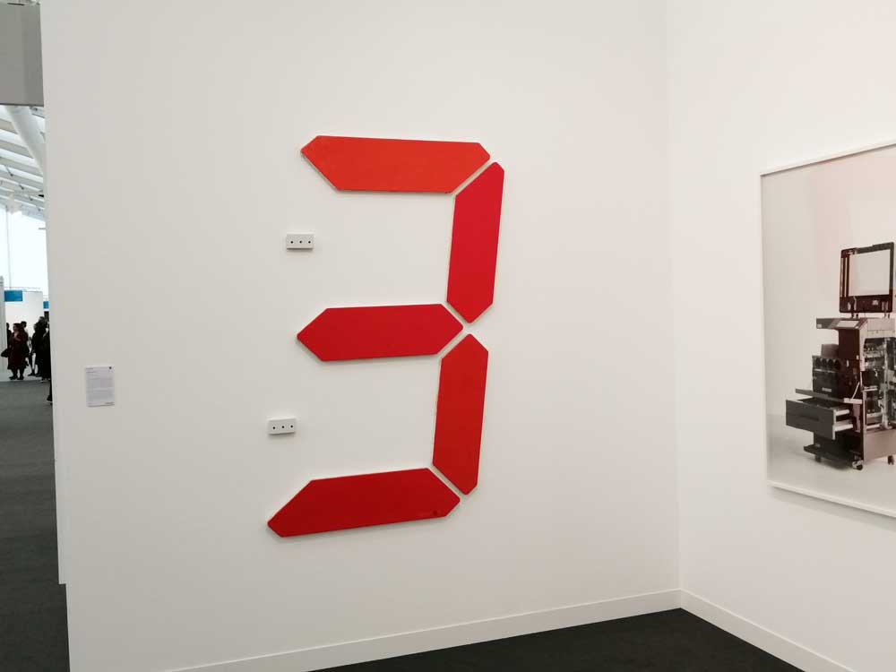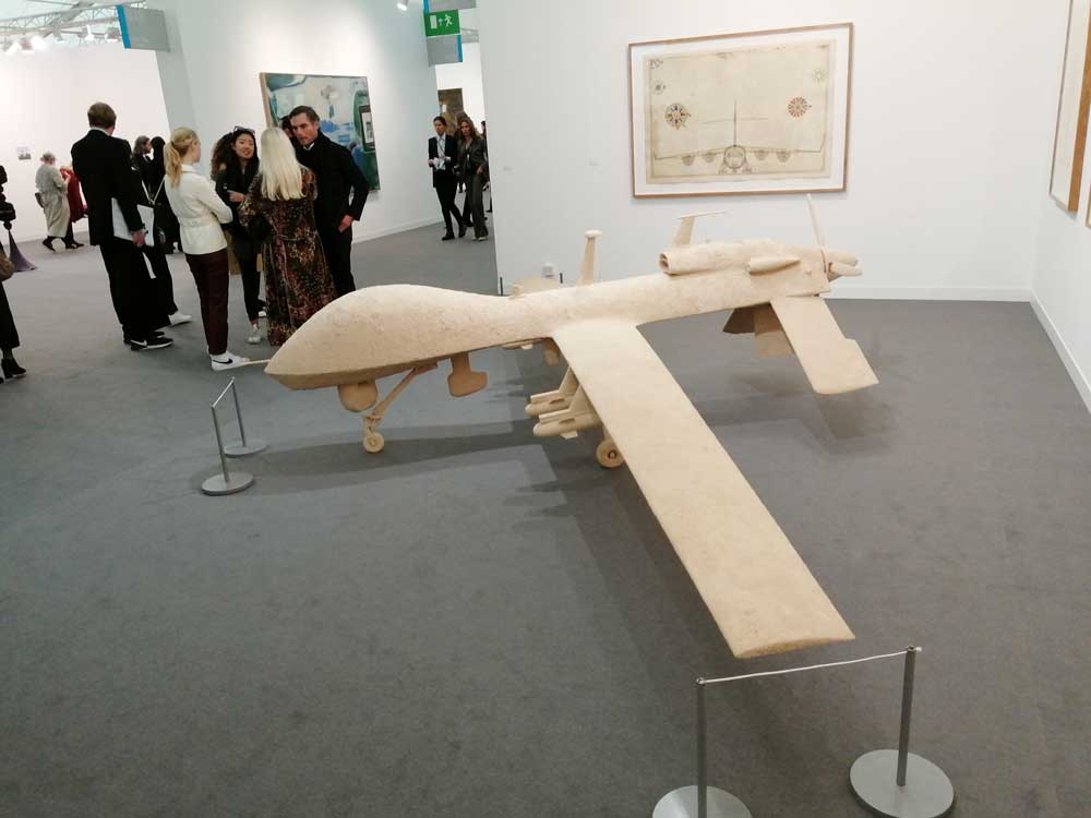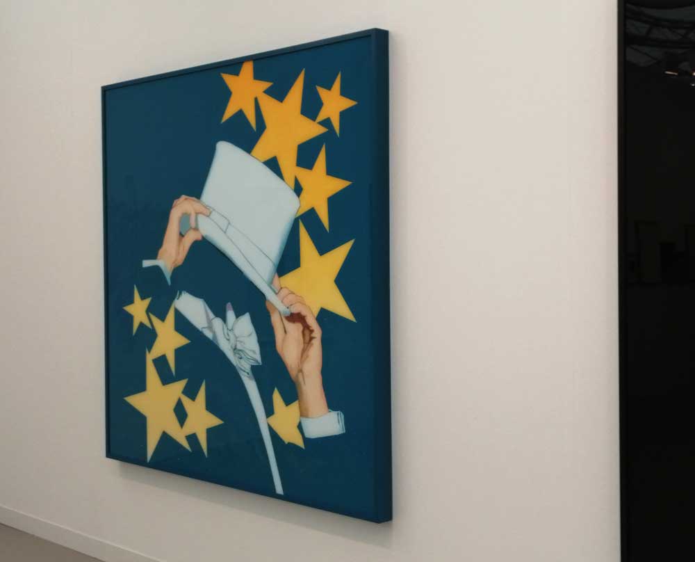 You’re bombarded with it all, paintings to the left, paintings to the right, lines and lines of politely hung gallery booths, dozens and dozens of clean cut galleries from London, Tokyo, New York, Berlin, South Africa, India, Mexico, Margate, Glasgow, hours of them, days of them, no way can you see it all, an endless like of booths and all trying to grab your eye and then when they do giving you the eye and assessing your buying power, check out your shoes, before dismissing you and burying there noses in their laptops again. So much art, way too much art, It all meshes together as one big whole and the one big whole (hole?) Does this year feel even more conservative than last time?