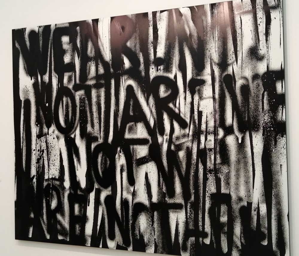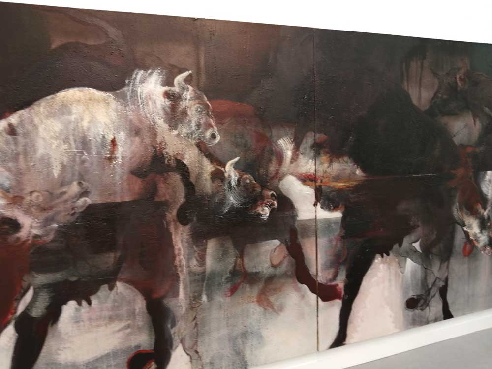 Drive-by art, that’s what it feels like in here, you just see hundreds of people walking, shooting with their phones, very few are stood silently looking for more than a couple of seconds, I guess we’re all trying to see as much as we can? It is so so (so) big, it is impossible to see everything, there is a fear that you’re missing something, have I walked down this lane already? Have I gone around in another circle, how many hours have I been in here now? You’re bombarded with it all, you start to lose hope, where is the exit? Down here? I need water, will I ever get out of here? Most of us are pointing our phones at things, snap and that’s it, move on, no one appears to actually be looking. But there is so much and of course some of it is very very good, I dare say if were to have nothing more to do than just view these works in the individual galleries we’d be looking for hours at just those five paintings, or just that one collection, but in here it all meshes together and there’s no time to linger, no time to really appreciate any of it, in here you really ate bombarded by it all.