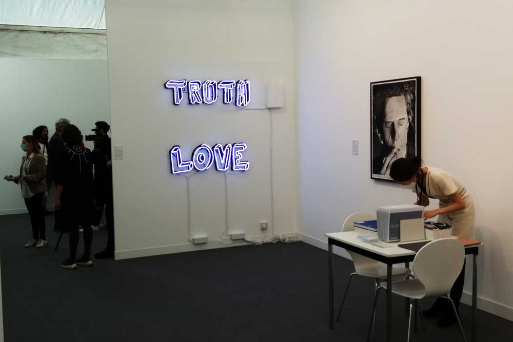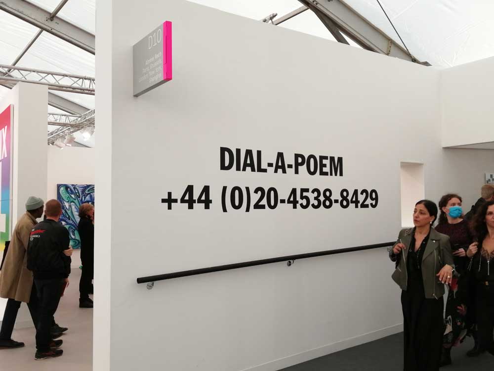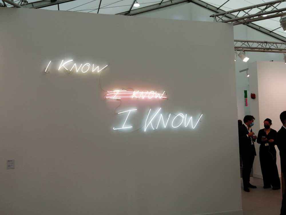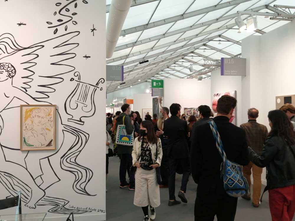 I don’t know, I don’t know, I’ve been coming to Frieze for a good few years, a good dozen now? it seems to get more conservative every year in terms of the actual art, and they surely did have a big chance to reset after the year off for the pandemic? To stop and rethink and maybe consider that with the climate emergency, to consider the whole business of so many things? That the new normal should not be exactly like the old one? This probably is the last time for me. We have in previous years run a best of Frieze piece rounding up just that, the best of, not sure if we will this year? If we do it certainly would not include the dreadfully dull Damien Hirst pieces – a hang presented by some washing machine company or something like that, pretty much sums the man and his art up, actually the hang itself was kind of good but jeesss, that hang can’t disguise things, those paintings suck a big one, what a stinker! I know the dealers, the investment banker and the collectors need to keep his prices up and keep the value of what they’ve already invested in healthy and no way can they allow the prices drop, the hype must go on, all about the price ticket now that’s how the market works but come on, surely the actual art must count a tiny little bit?