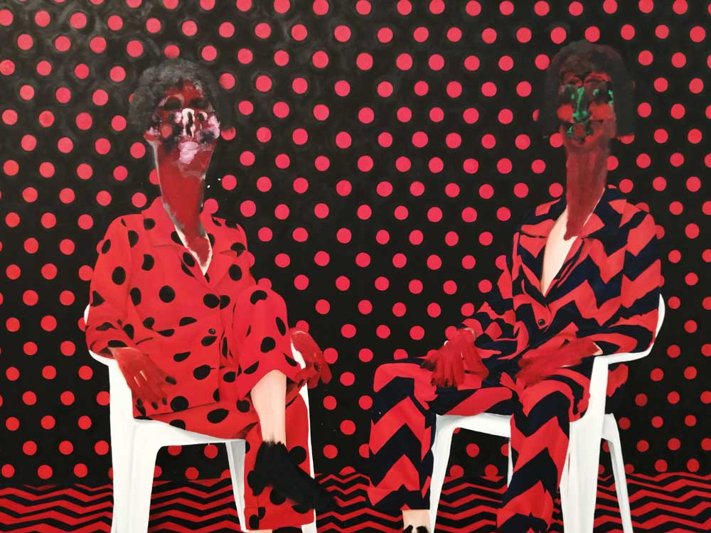 Jannis Varelas, Conversation Piece, 2021, oil, gouache, gesso on canvas – The Breeder Gallery, Athens