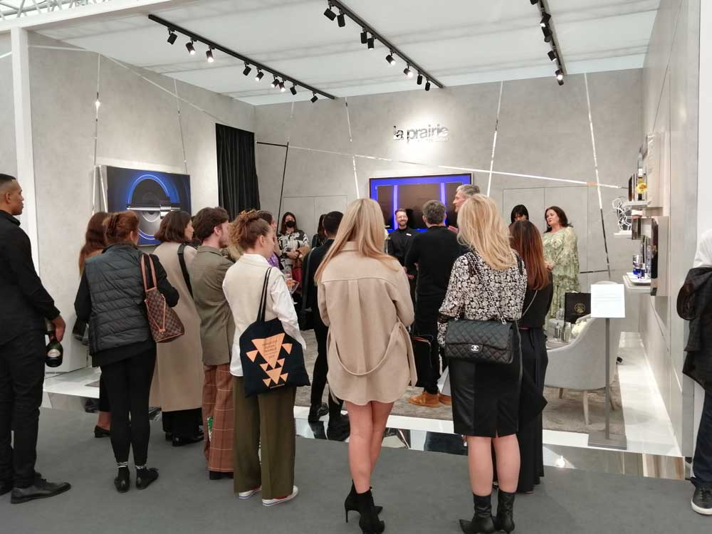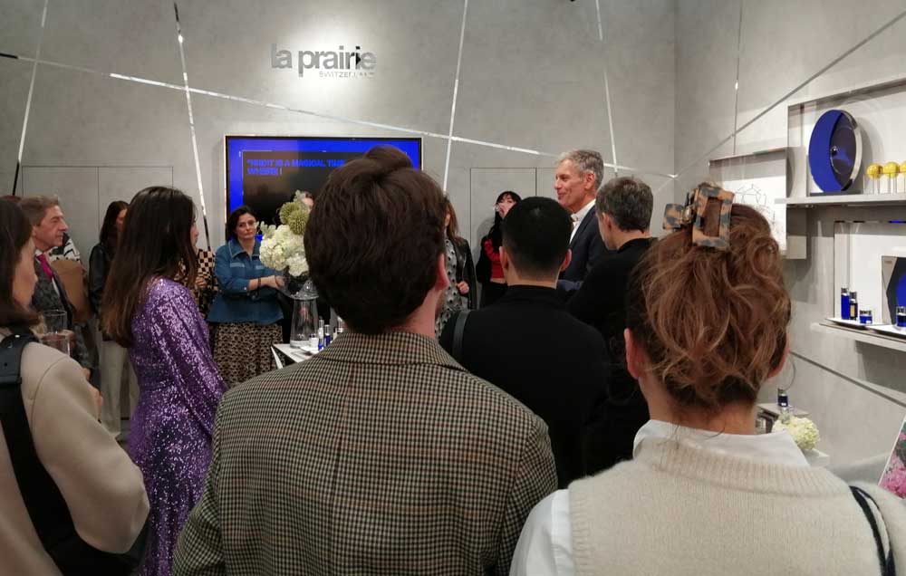 A cosmetics salesman, getting more attention than the art…
