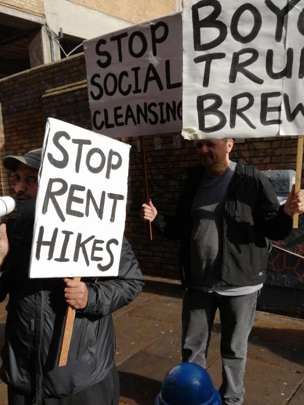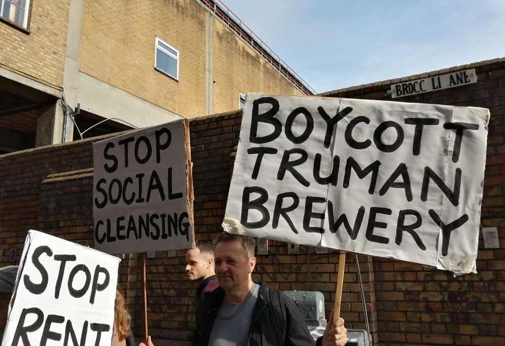 Everything about what’s happening down at Brick Lane is wrong right now, everything Trueman Brewery are doing is wrong, East London and the many strands of the long-standing local community are being ripped apart, we’re all being pushed out, any yes we artists are being gentrified out of our art spaces as well. Art spaces, dress making spaces, local food spaces, the authentic multi-cultural beauty of Brick Lane, a culture that has evolved in such a positive way for hundreds of years all being washed away by heartless corporate greed by those community destroying gentrifiers who want us to shop and eat in the same soulless cash-free glass-fronted little boxes.