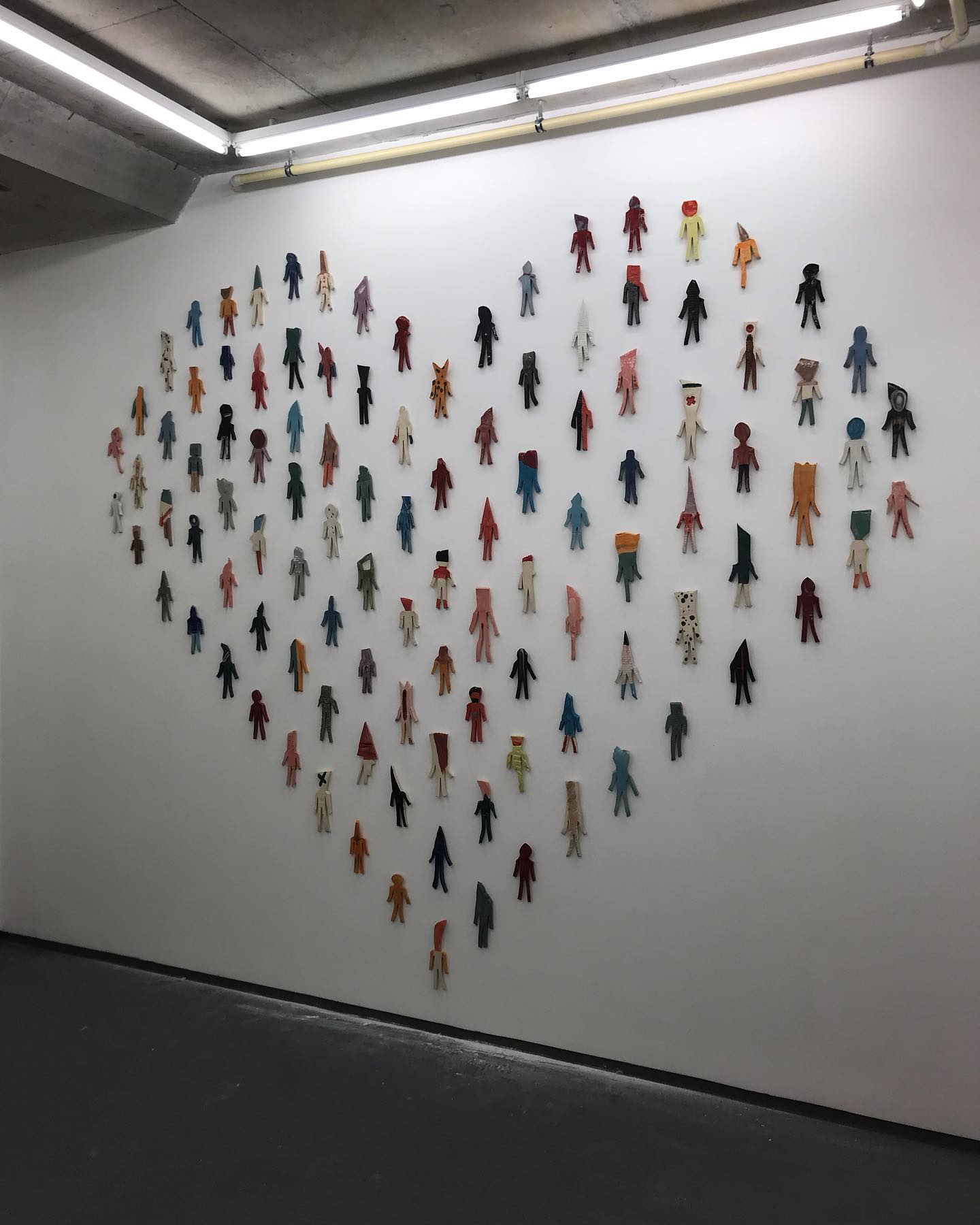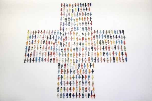 Franko B was raised in an Italian orphanage and Boarding School run by the Italian Red Cross, and it these experiences that he discusses in this exhibition. He has created a particular vision of a childhood surrounded by many other childhoods and alongside images of home, such as it was, and as how it could have been. Working in glazed ceramics which he fires in his own kiln, B has made multiple small childlike figures that together form a giant red cross and a giant heart. Fixed onto the walls, they collectively form, document and represent all of the children who like Franko, passed through the hands of the Red Cross and comment on the continuing scandals and abuse of vulnerable children. The resulting installations are monumental in scale placing the viewer in front of a towering walls, that represent the scale and scope of the problem.