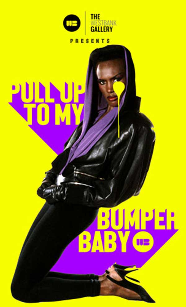 Pull Up to My Bumper Baby opens on Thursday 4th November 2021, 6pm until midnight down in the tunnel at 26 Leake Street, London, SE1 7NN. What happens beyond the 4th is left to the gods, nothing was said in the press release or on the gallery website )or in answer to our question).