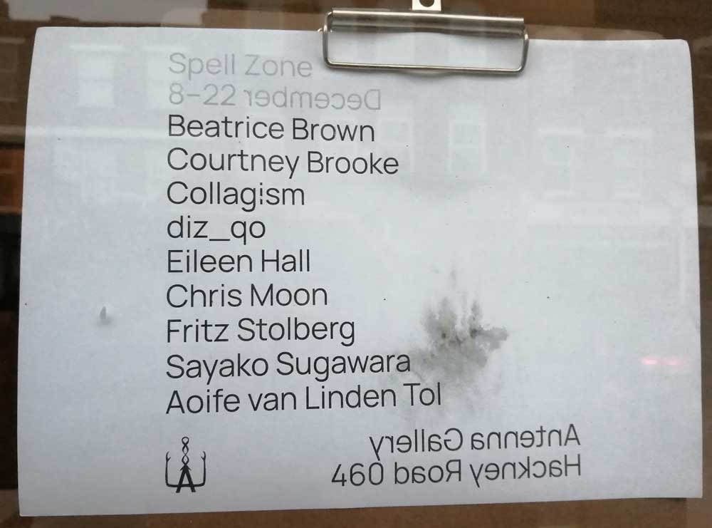Did spy this rather wonderful painting by Chris Moon at Antenna Gallery on the Hackney Road today, the rather beautiful piece is part of a group show called Spell Zone at the intimate gallery. The show runs until December 22nd, not seen any of Chris Moon’s work for a while, not seen this space before either, always good to see a new art space…