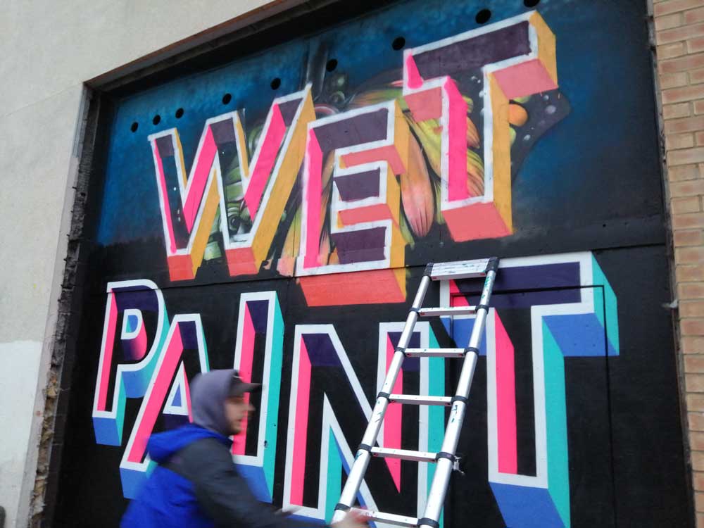 Caught Mr Sprays painting our front door here in Hackney the other day. Do like his pop art style, his neon ways, his details and it isn’t that often you catch a so called street artist painting with a pallette knife