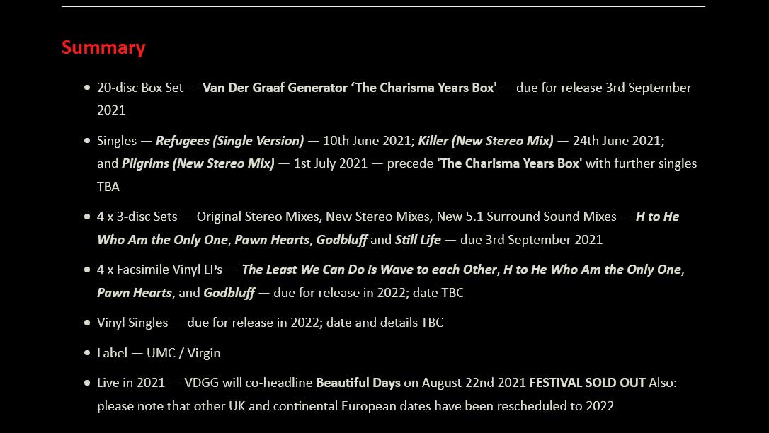 ORGAN THING: A new Van Der Graaf Generator single, all the box set and re-issue news and notes, well a new mix and a rather beautiful one, Refugees…