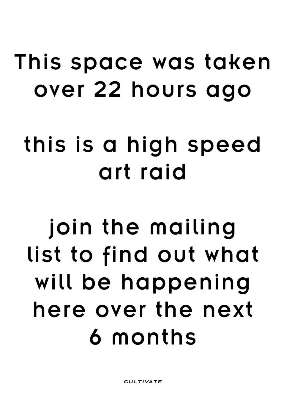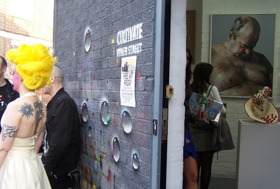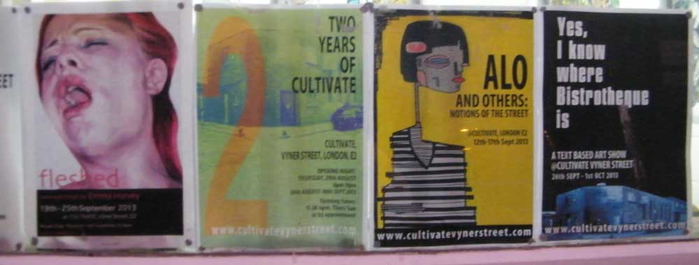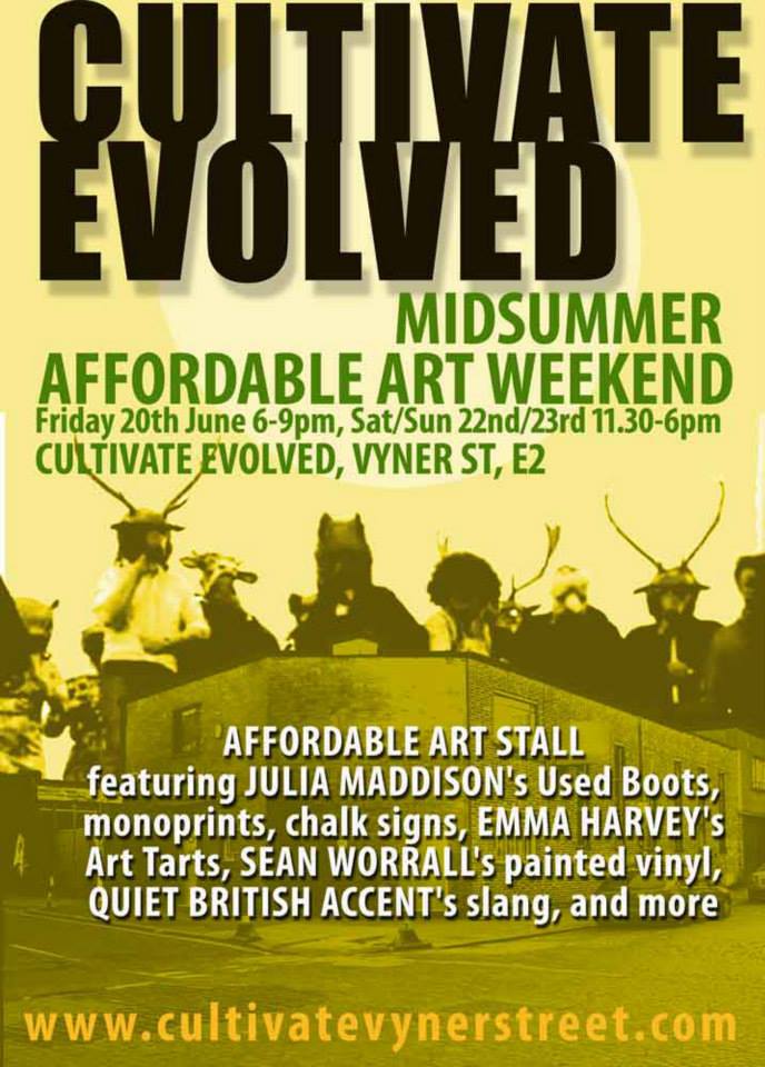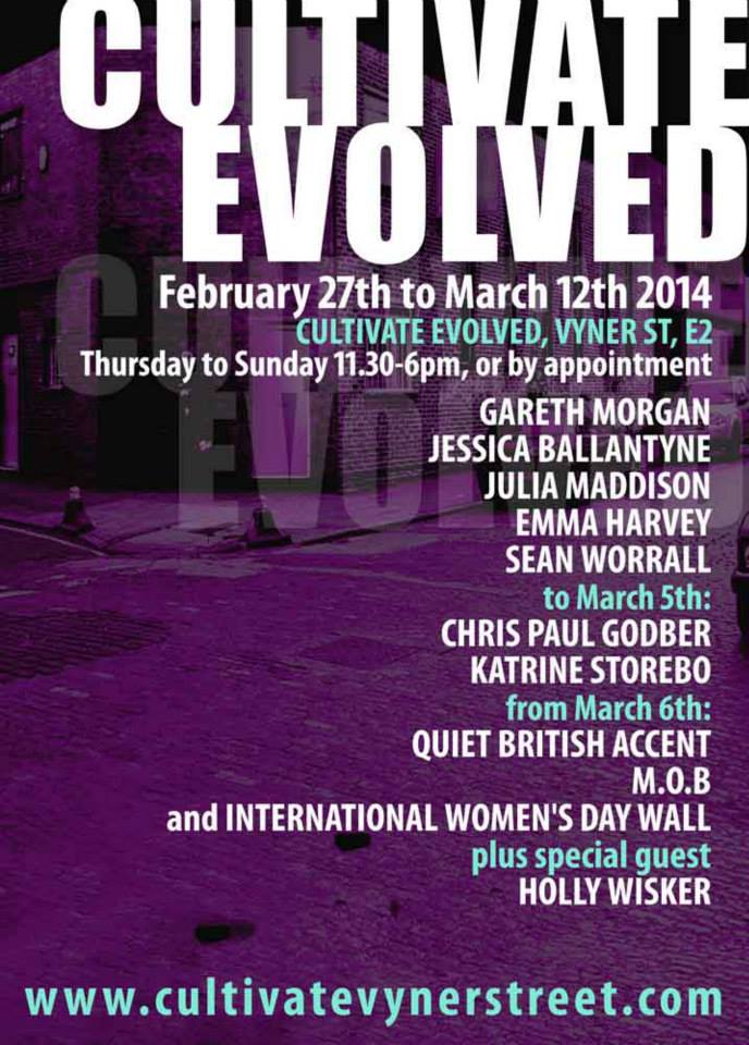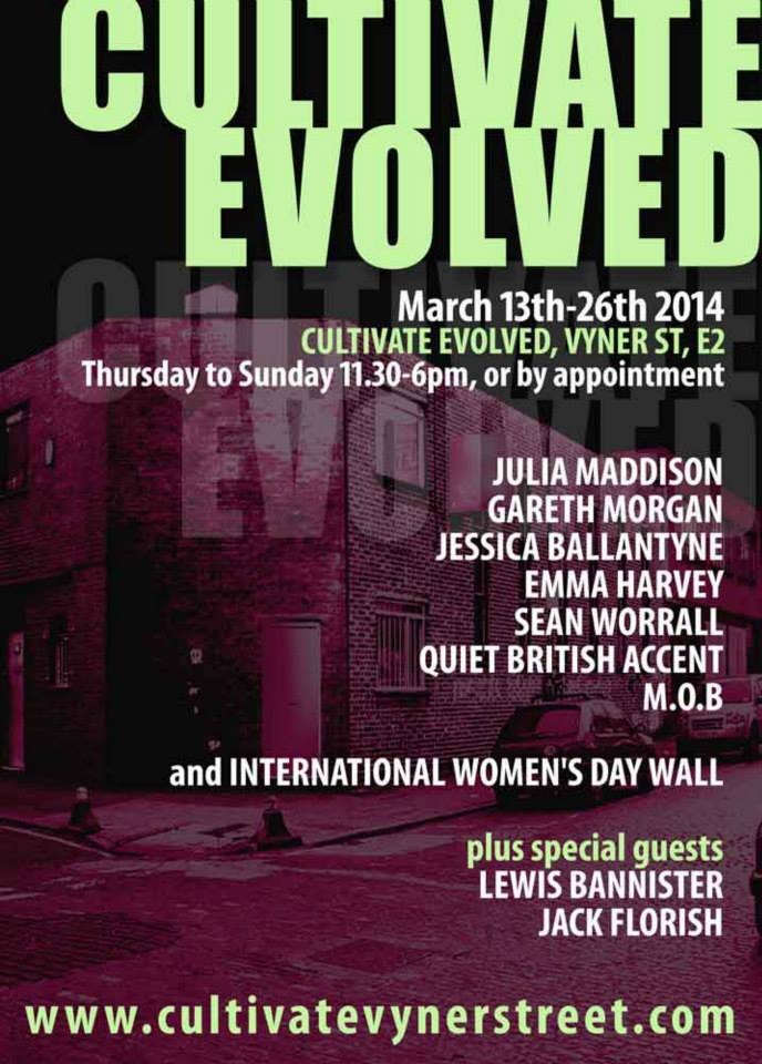 I do say that we are artists first, and (slightly reluctant) gallerist/curators second, the making of art, painting mostly, does come first, we have been curating art shows for the last 10 or so years now though – exhibitions, events, gallery shows, group shows, things out there on the street, shows in condemned London warehouses, in offices, in formal white-walled galleries, in and old Edwardian drapery shops in car parks, under railway bridges, in street-art basements, a run of shows in an old East London greengrocer’s shop as well as a four year full on non-stop run of shows smack bang in the middle of East London’s now mythical Vyner Street. Cultivate is brought to you by two artists, Sean Worrall and Emma Harvey alongside an evolving cast of contributors