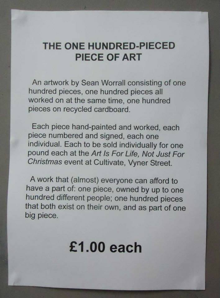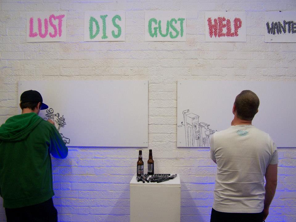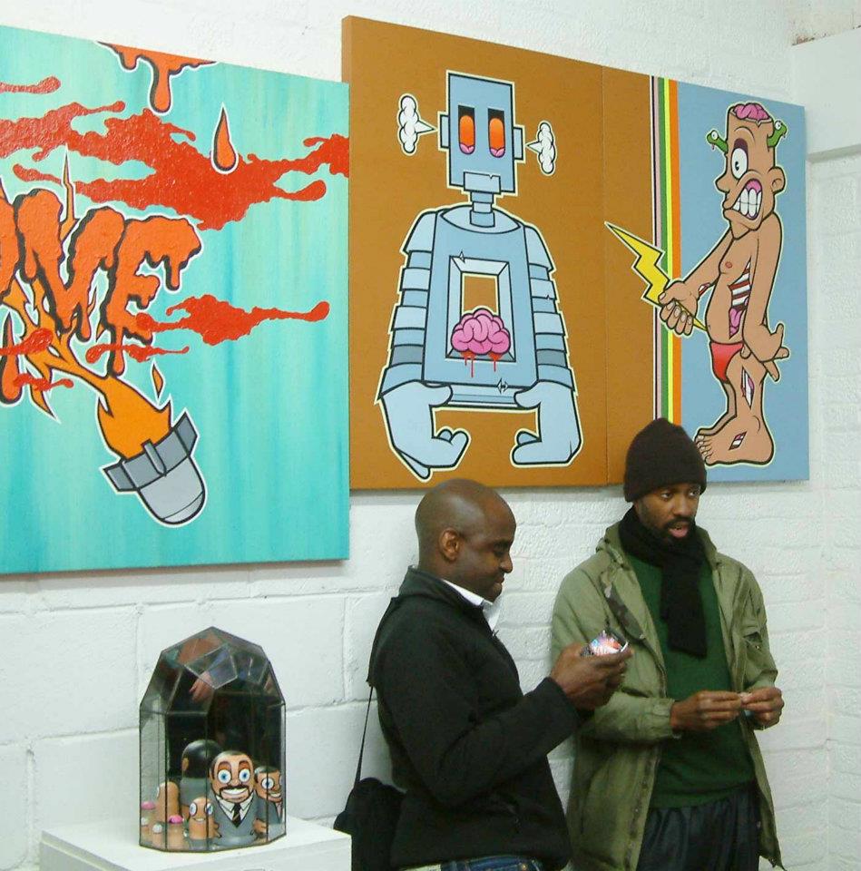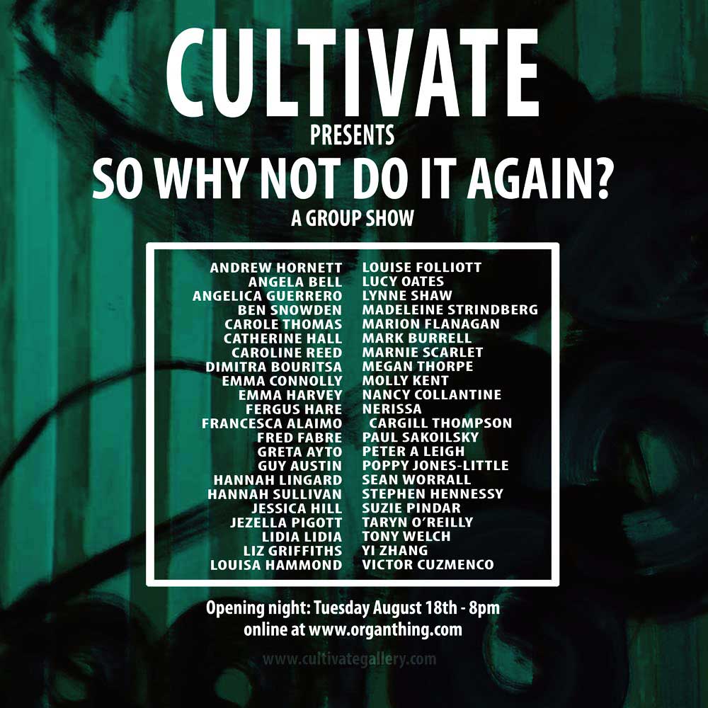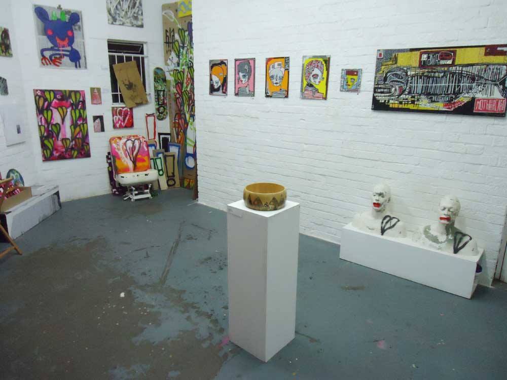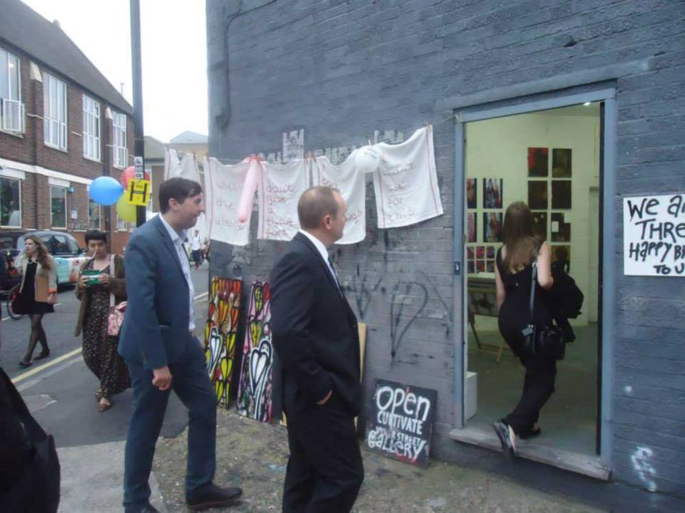 I do say that we are artists first, and (slightly reluctant) gallerist/curators second, the making of art, painting mostly, does come first, we have been curating art shows for the last 10 or so years now though – exhibitions, events, gallery shows, group shows, things out there on the street, shows in condemned London warehouses, in offices, in formal white-walled galleries, in and old Edwardian drapery shops in car parks, under railway bridges, in street-art basements, a run of shows in an old East London greengrocer’s shop as well as a four year full on non-stop run of shows smack bang in the middle of East London’s now mythical Vyner Street. Cultivate is brought to you by two artists, Sean Worrall and Emma Harvey alongside an evolving cast of contributors