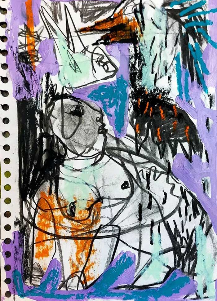 5: This is a Vesna Parchet piece, we’ve long admired her paintings, collages and drawings, both her work in canvas and her work on outside walls, Vesna has figured in many of our Cultivate shows both physical and on-line, this piece from her sketch book jumped out as we were putting together Deflect, the next Cultivate on-line show (that will once again be hosted here on these Organ page for Tuesday 11th January onwards). Do go explore her Instagram feed, lot of good thngs to be found there