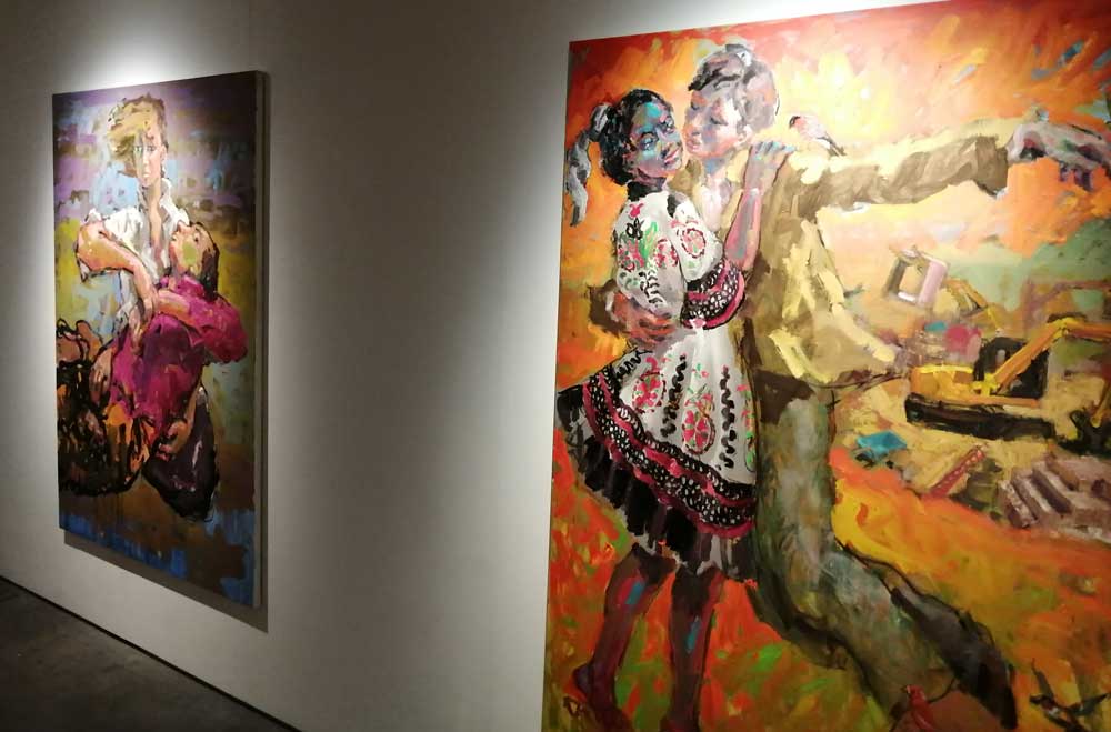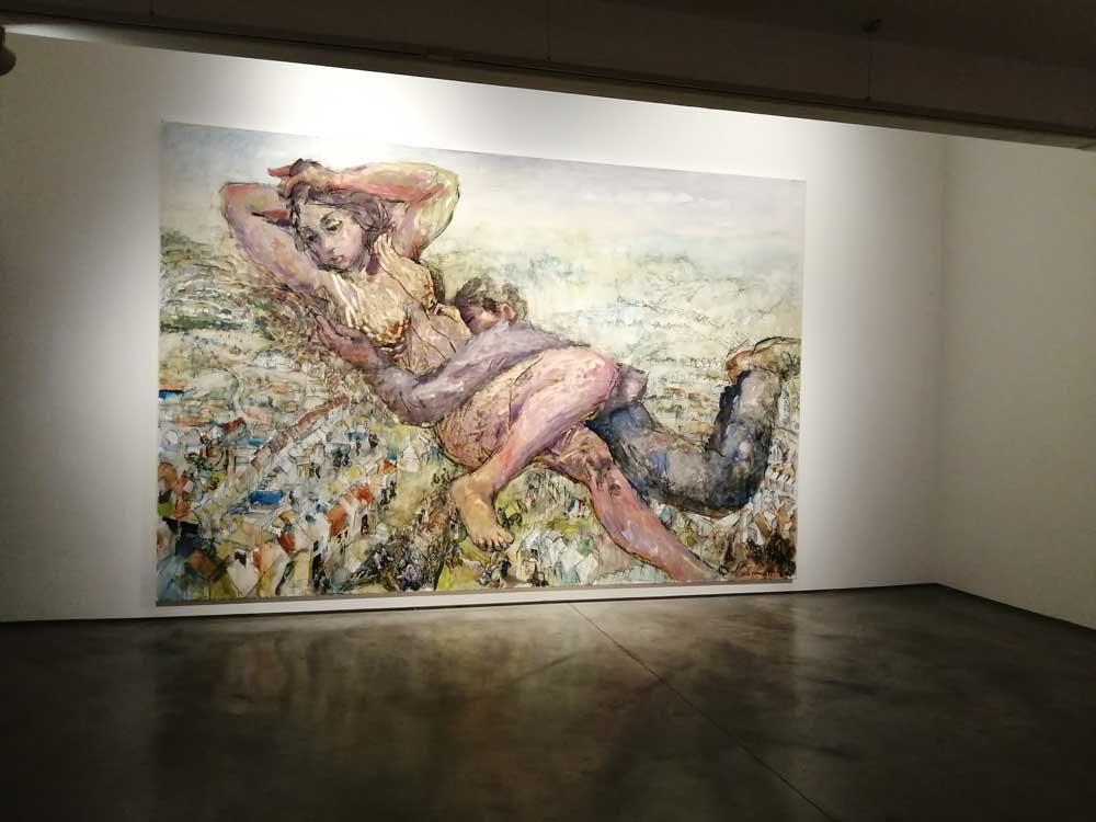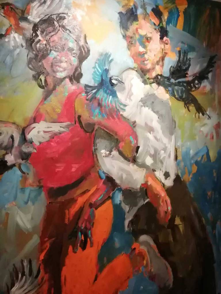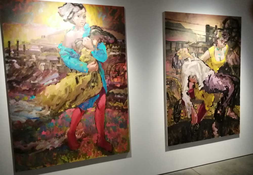 That gigantic painting taking up the entire wall does grab you first, impossible for it not to, but once you are in the room, it doesn’t dominate as much as the energy of the paint and the gorgeous use of colour in the relatively small paintings does. This is a really exciting show, it really is a buzz to stand in the middle of the rime and bask in in all before you zoom in on one and then another of the gorgeous paintings that surround you.