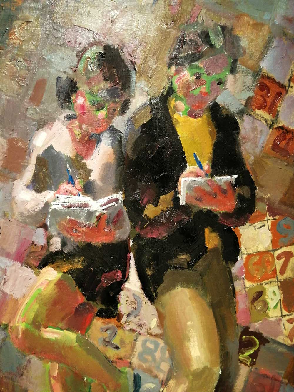 Kevin Sinnott’s paintings are about movement, the movement of paint, the movement of the subjects, the people (the movement of the viewer, you do need to move around these pieces), the movement of the bodies and their relationships – there is a lyrical style, a flow, a dance, the paint is glorious, joyous, dynamic, it really really is a thrill to be in here with all these paintings (with the room to myself). Gloriously gestural, exciting paintwork, the paintings are beautiful complex yet wonderfully simple, free, easy, they feel very natural, free, easy to look at, to climb into, they hold your eye, they demand you come back – these painting are so alive, a sense of them being about community, about his Welsh community, about life – there’s a warmth here, a passion (a Welsh passion?), this big room full of big paintings is just really really exciting to see, it eels so good to be in here (and I’ve never seen a decent photograph of a Kevin Sinnott painting), this is a proper painting exhibition, one of the finest in quite some time, highly recommended. (sw)