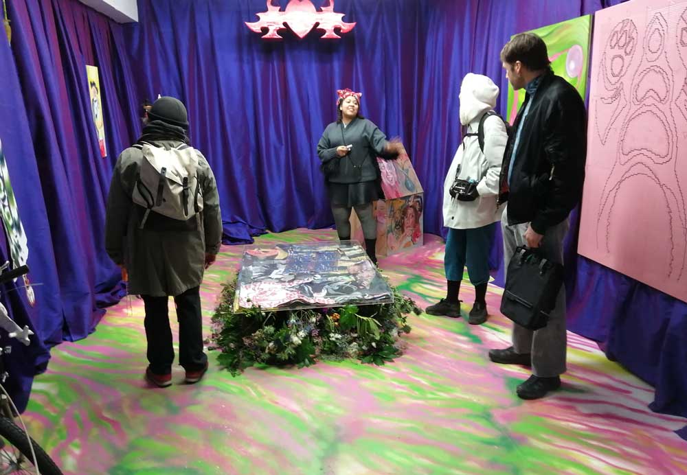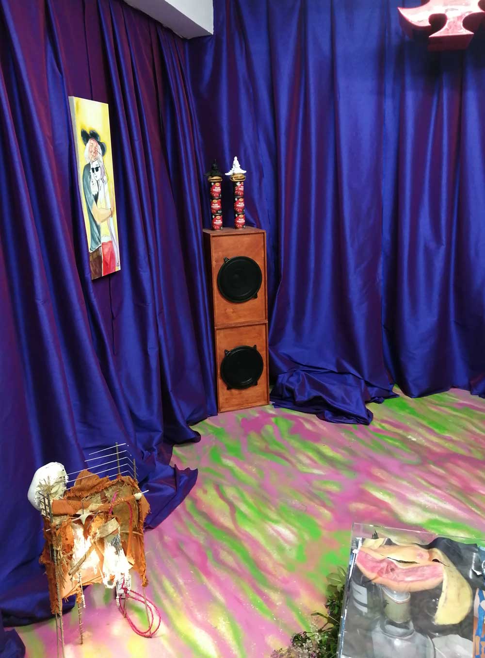 The Grotto at Ridley Road Project Space, London E8 – January 2022 – it was only on for a weekend, over on Ridley Road, by the market, and it did feel like a grotto, a purple grotto, a punky, DIY flavoured art grotto. And for once the fact there is absolutely no indication in terms of which artist is responsible for which bit doesn’t matter that much, it is this time, all about the whole, the curation, the one of it all –