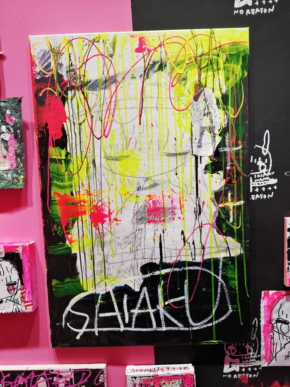 Her first art book “Art Rock Manifesto” (DLE Publishing) was published in April 2019, followed by her first solo exhibition in London. Her largest solo exhibition to date titled “NO REASON” was held at Gallery KATA in Ebisu Liquid Room in Tokyo in 2020.