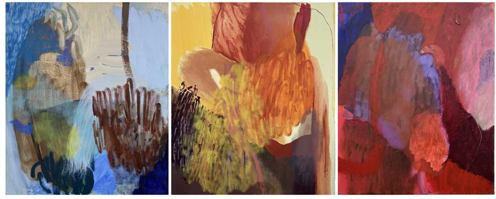 5: A heavy tether: new paintings by Rhiannon Inman-Simspon at Bobinska Brownlee New River Gallery – 3rd Feb – 26th Feb 2022 – “Rhiannon Inman-Simpson’s current work explores visceral encounters between body and place. The work looks at the differences in how we navigate, both physically and imaginatively, three distinct realms: the bodily experience of an environment, the pictorial space of a painting and the space of written language. Approaching each painting instinctively, she moves between colour, form and marks in the way she might move her body through a physical environment. Through a process of layering and removing paint, colours begin to vibrate and interrupt each other and forms emerge and dissolve. There is a play of weight and air in the paintings: these spaces are rooted to the ground but have air to breathe.