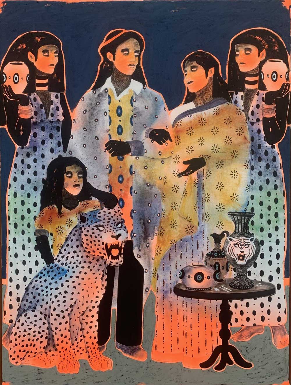 “These are the works of Danish artist Rune Christensen whose compositions are inspired by his travels around the globe, melding different cultures, histories and narratives to create a powerful sense of vitality. Wanderlust, his first solo exhibition at Kristin Hjellegjerde Gallery, London, is as much a celebration of the beauty and diversity of our world as it is an expression of longing.