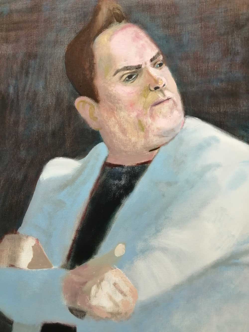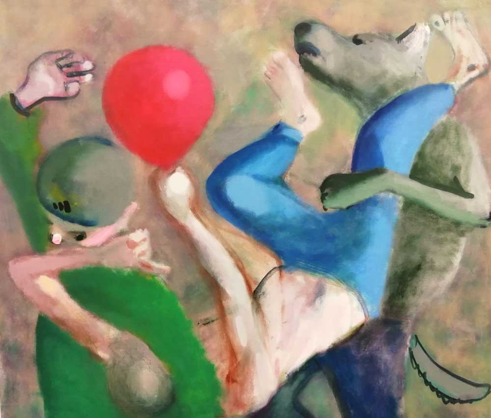 The Charles Williams exhibition just opened at Hackney’s New Art Projects, once again it feels dramatic descending those stairs into the big bright white-walled basement space, it always feels exciting going down there and getting a first glimpse of a new show. Charles Williams is an interesting painter, an exciting one, a slightly mysterious one, the mystery that comes with his painting surely has to be a good thing. We’re told he lives in semi-reclusion in rural Kent. He was a founder member of the notorious Stuckist art movement, his current body of work certainly has a healthy stuckist feel, a little more than just that though (I must confess I never really got on that much with the notions of the Stuckists). There’s a warmth here, a feeling of a painter loving what he’s doing, a painter lost, in the best possible way, in his world, in the stories he tells, the short stories that his paintings hint at. His paintings are a delight, is it wrong to say they’re an almost innocent delight? That does sound a little throwaway, a little uncommitted of me and that really isn’t the intention here, these are strong paintings, bold paintings, his black lines that connect the movement of the people, the relationships of the subjects. These latests paintings are about relationships, about animals and their relationships with their humans, or the way we see those relationships, the works throw up many questions, they can be read in many ways, they hint at so many things, they maybe suggest things? They are a delight but there’s more to i that that and “nice” is never ever what an artist wants to hear and yes delight” isn’t that far from “Nice” and this show is far more than just “delightfully nice”. This is a strong show, these are intriguing works, committed works, exciting works… (sw)
