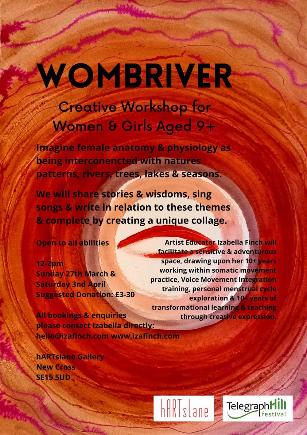 3: WombRiver at hARTslane – 26th March until 2nd Apr 2022 – Now information is a little thin on the ground for this rather interesting looking event, best to click on those flyers up there and enlarge them, most of what there is there on the three flyers. Here’s a little more from whoever offered this rather intriguing description – “Prayer of remembrance, music dance film; Accompanied by multimedia works, weaving mythology, biology & ecology in celebration of female physiology & menstruation”
