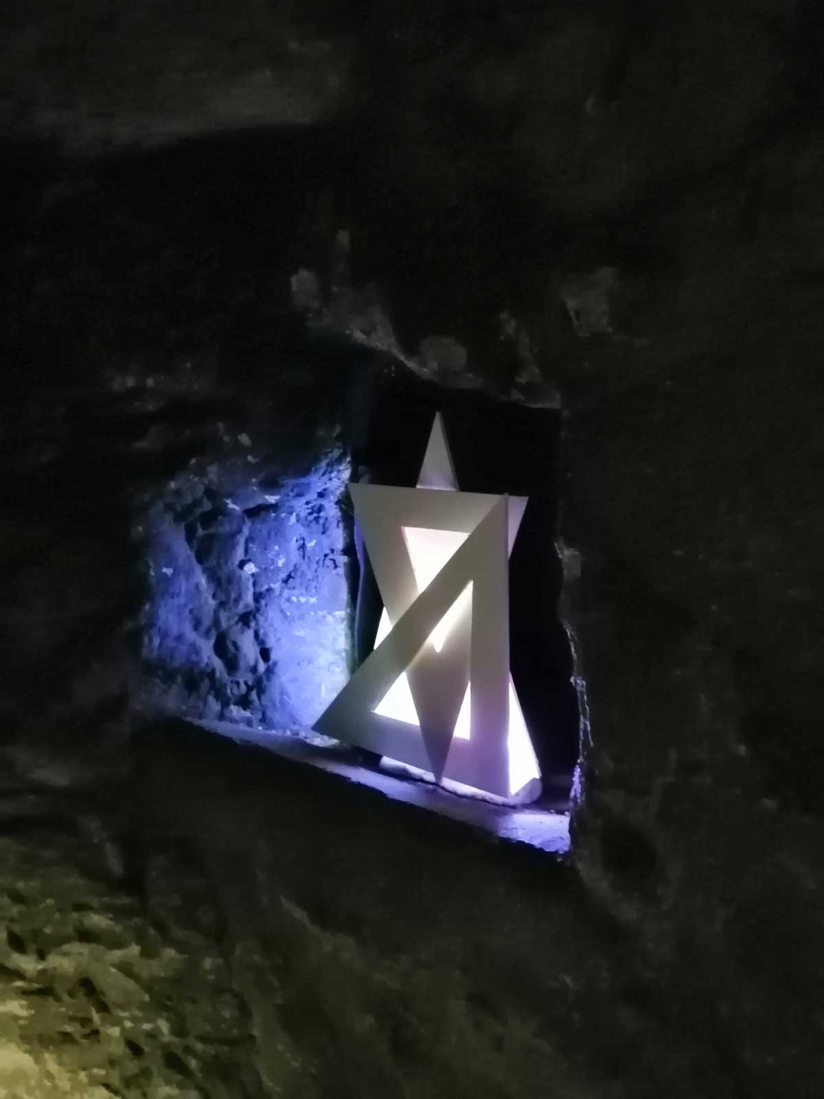 Once again, as it is with the recent Mother’s Ruin group show not far away at the House Mill over in Bromley-by-Bow, it is rather easy to get a little distracted by the building itself, the history, the marks on the walls, the wear on the bricks, the sense of it all. To not get distracted by the question of where the show and the building starts, is that bit part of the building or part of the actual exhibition? Once again not necessarily a bad thing, these are site-specific shows, they are whole things. It is a little cramped in the tower, a little dark, you are kind of concentrating a little on the steep twisted stairs and maybe not falling down them to totally focus on the the pieces embedded in the walls half way between the floors as you gingerly work your way up. You are maybe distracted (as we might have said about exhibitions in the tower before) by the working of the clock or the ancient graffiti or what you can see once you get to the top. The art that is in the space works rather well in terms of the relationship with the space, some of the placement could maybe be a little more considered, some of it is a little lost, and the rooms are so small that viewing in a busy room is a little difficult but this is, once again, a good show and yet another a fine fine art experience.