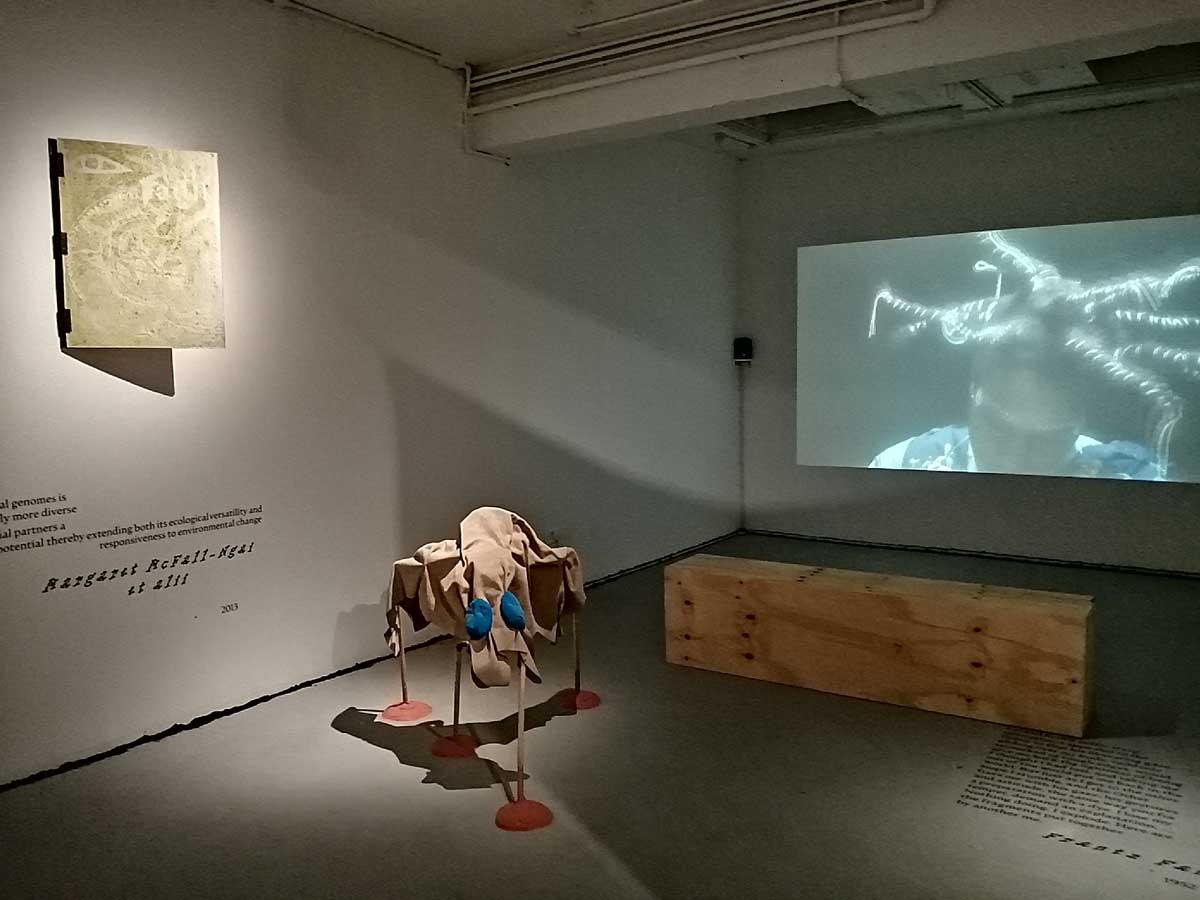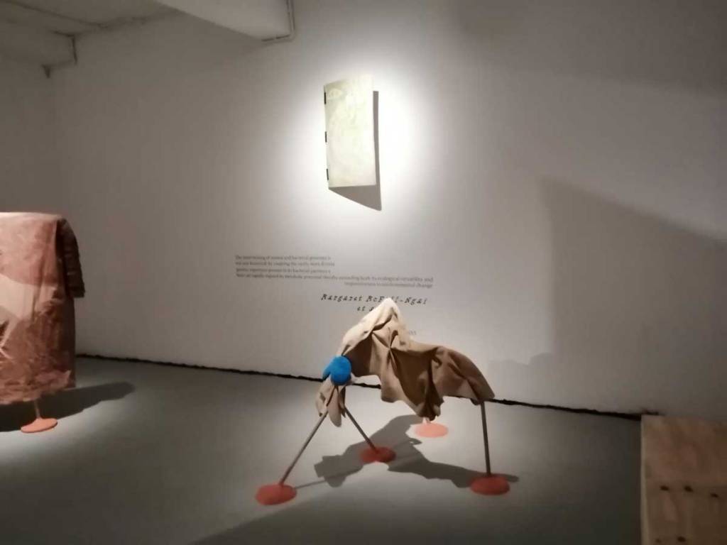 and… “Conversely, a number of artworks in the exhibition suggest that it is at a molecular level that such violence can be opposed. They draw our senses to the various qualities of matter – solid, liquid, sonic – while alluding to their affective, psychical and ritualistic dimensions. Other artworks establish parallels between molecular processes of division, coagulation, proliferation, and the micro-organisations that spread within disparate cells of society to infiltrate dominant political bodies. Some refer to state strategies monitoring the cellular composition of our bodies to tighten border control; others imagine symbiotic alliances between humans, animals and microbes”.