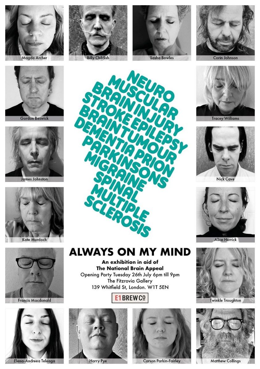 ORGAN PREVIEW: Always On My Mind (an exhibition in aid of The National Brain Appeal) is a ahow curated by artist Harry Pye (that’s his paintingof Elvis up there), it happens at Fitzrovia Gallery London W1. Opening Party 6pm till 9pm on Tuesday 26th July. Then open Wed 27th July to Sat 30th July between 12pm and 6pm. Admission is free. The show features; drawings, prints, photography, paintings, and sculpture that reveal what is happening inside of the heads of 16 esteemed artists; Magda Archer, Gordon Beswick, Sasha Bowles, Nick Cave, Billy Childish, Matthew Collings, Alice Herrick, Corin Johnson, James Johnston, Francis Macdonald, Kate Murdoch, Carson Parkin-Fairley, Harry Pye, Elena-Andreea Teleaga, Twinkle Troughton, Tracey Williams
