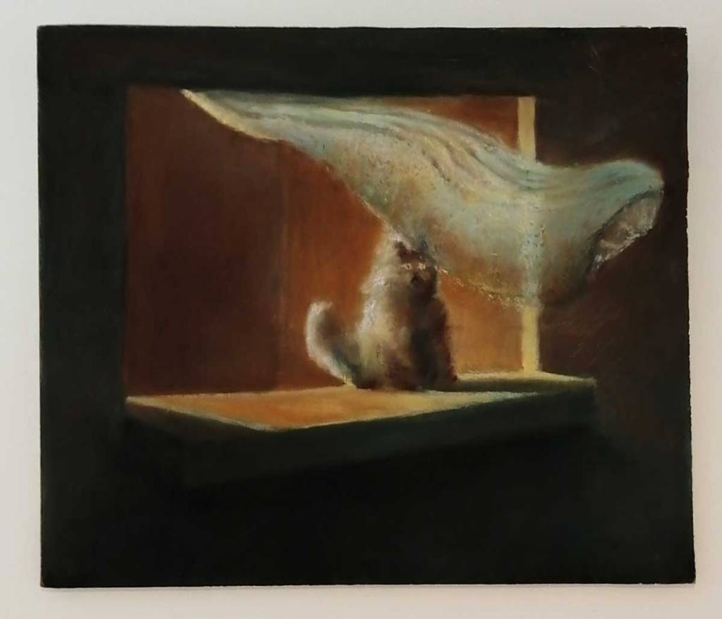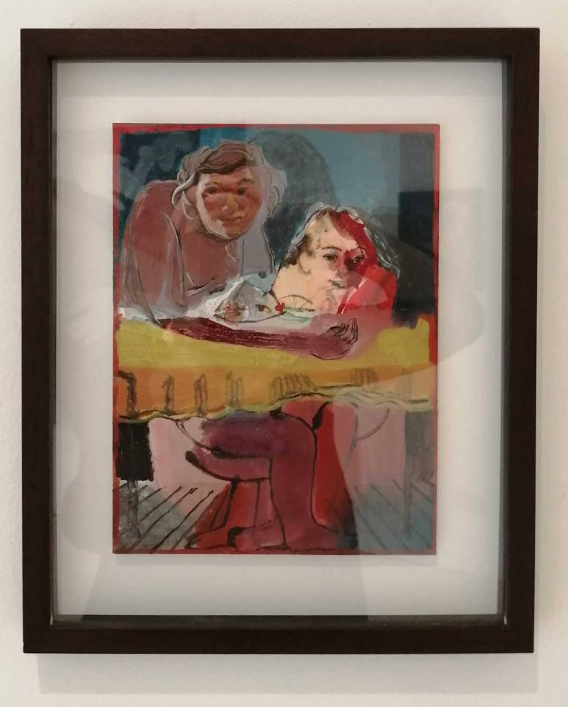 …and I told you all that at the top of the page because now I’m going to tell you I like everything here in this cleverly understated first show at The Split Gallery. The space itself in a moderately sized space, the feel is just the right balance of formal and welcoming artist DIY, the gallery set back off the road in what is pretty much the front couple of rooms of a big house. The artists taking part are Ed Oaks, Joana Galego, Johannes Bosisio, Lucy Evetts. Ranald Macdonald and Sophie Knight. There are good conversations in here, I could pick out favourites but that’s not really what’s required here is it? I do really think the whole show is strong, okay, I do especially like those two Johannes Bosisio paintings and that Sophie Knight piece is particularly strong, but hey, to pick pieces out is a little naughty in this case, the whole show is a positive, we look forward to more (sw)