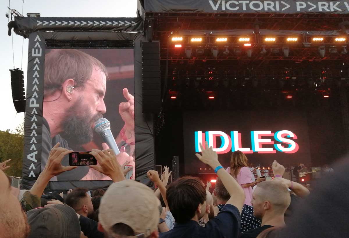 All Points East, Victoria Park, East London, 19th August 2022 – It really can’t be lost on anyone, what with The Clash connections headlining over on the other stage as part of Gorillaz, it can’t be lost on anyone just how significant Idles were in the middle of East London’s Victoria Park tearing it up in such a joyously united way last night. 44 years on from that legendary Anti Nazi League concert and probably the finest moments of both The Clash and the whole idea of Punk Rock as something more than just a fifteen minute fashion statement, it surely can’t be lost on anyone? By the time they kick in with the positive energy powered by those opening lines of Danny Nedelko and seemingly the whole of the crowd join in with My blood brother is an immigrant. A beautiful immigrant, by the time Idles kick in with Danny Nedelko the whole place is won over and with them. Actually they had it won from the moment they hit the stage, there’s a genuine love for this band, they’ve got something special, they’re pulling everyone together, all the tribes, they’re the right band in the right place at the right time and what a gig! I haven’t seen Idles for a long long time, we covered them lots back in their very early days, pub gigs, that art exhibition, Joe’s dad, the first releases, we watched them take off and then kind of sat back and left them to it, watched them grow, brilliant, great to see it happen, a band with something to actually say, an excellent bunch of people, all power to them. Something genuine, no hype needed, a real word of mouth thing, you can’t hear a band like Ides and not want to share them, they were off, didn’t need us any more.