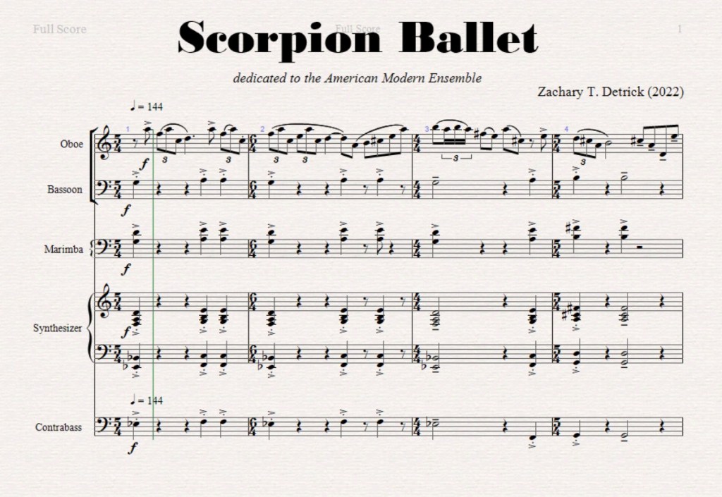 Organ Thing of The Day: “My piece “Scorpion Ballet” for oboe, bassoon, percussion, synthesizer and double bass (seen here replaced by electric cello!) was premiered at the Mostly Modern Festival. Thank you Robert Paterson et al. for letting me sneak a barely disguised rock composition into your classical festival, and a big thank you to Georgia Mills‘ laser-sharp conducting for bringing the piece to life!” so said New York’s Zachary Detrict just now as he sent us off down his rabbit hole…