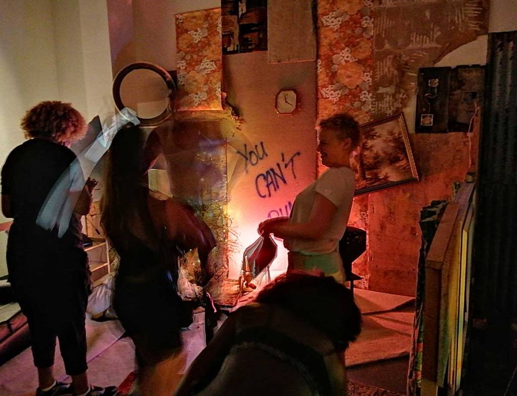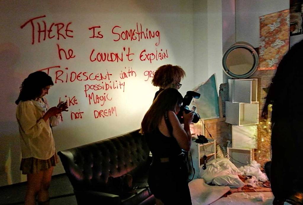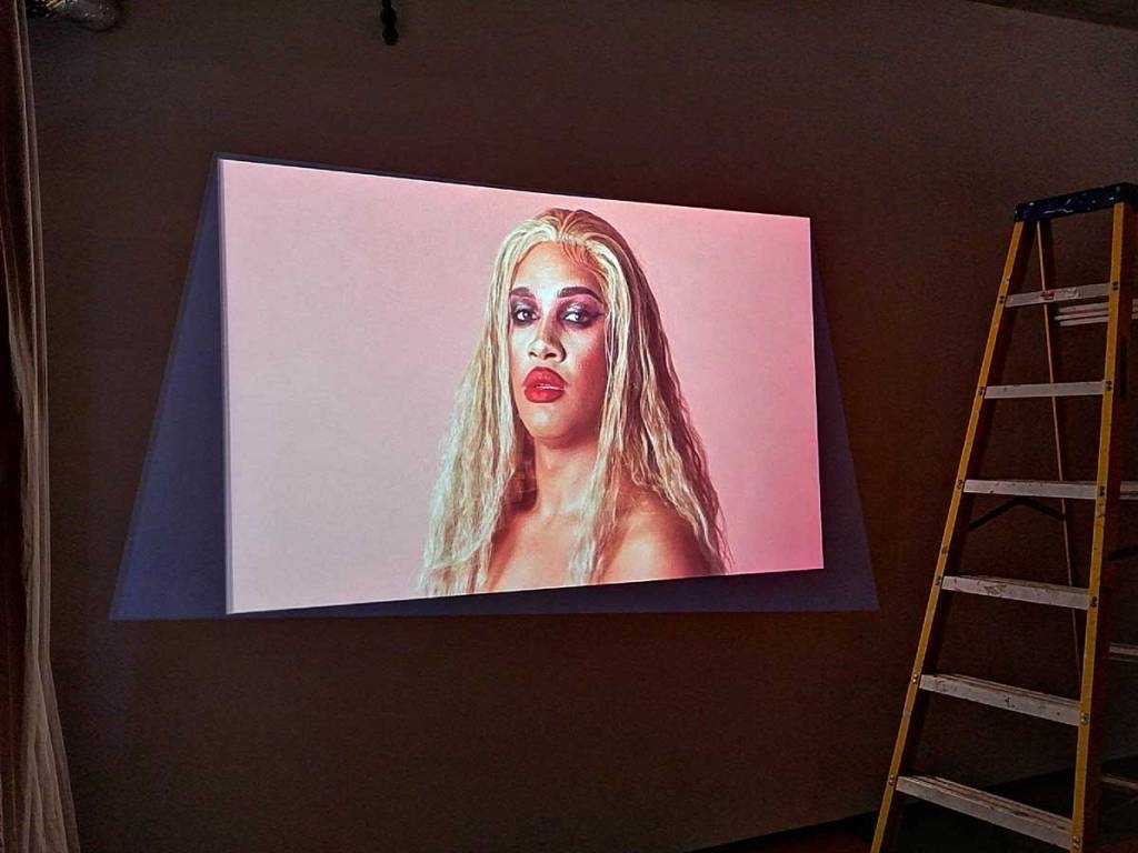 Joseph Wilson’s ‘Fragments Between Us’, New Art Projects, East London, August 2022 – I haven’t quite worked out what was happening at New Art Projects last week? That opening down in the basement was stupidly hot in many more ways that just the obvious one during this damn heatwave and I must confess by the time I got there, I had already partaken of a number of cocktails and a slice or two of pizza over at the Miss Bugs opening, that and another couple of opening night private views or whatever you want to call them between the Miss Bugs show and this one (why are they called Private Views, they hardly ever are private and…). By the time I got to New Art Projects the place was like an oven, there were bodies all over the place, films were running, people were running, make up was running, photos sessions were happening in dark corners. “We had every London drag queen in the place at once” said a still recovering gallery curator when I dropped back in a couple of days later to try and see things in a different light.