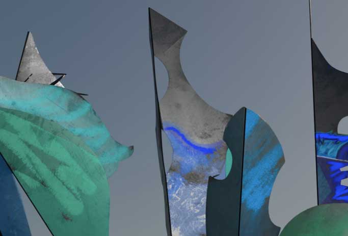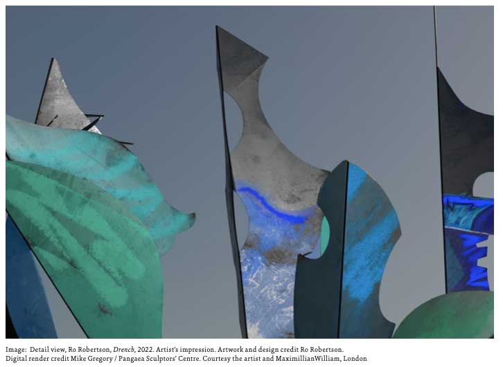 The 2022 display engages with a number of themes; works by Robert Indiana, John Giorno, John Wood and Paul Harrison, and Tim Etchells are structured as texts, conveying messages that merge poetry and political messages. The poetic-political plays out further in the work of Péju Alatise and Ro Robertson, whose gazes turn to female and non-binary healing in nature, and Shaikha al Mazrou, Beverly Pepper and Ida Ekblad create ambitious sculptures that are charged with the sensibility of women. The importance of coming together – as community and as a social voice – is conveyed in works by Marinella Senatore, Pablo Reinoso, and Ron Arad. Finally, as our world looks with uncertainty into the near future, works by Alicja Kwade, George Rickey, Emma Hart and NS Harsha conjure the universal and spiritual, whilst folklore and mythology are explored by Matthew Darbyshire and Jordy Kerwick.”