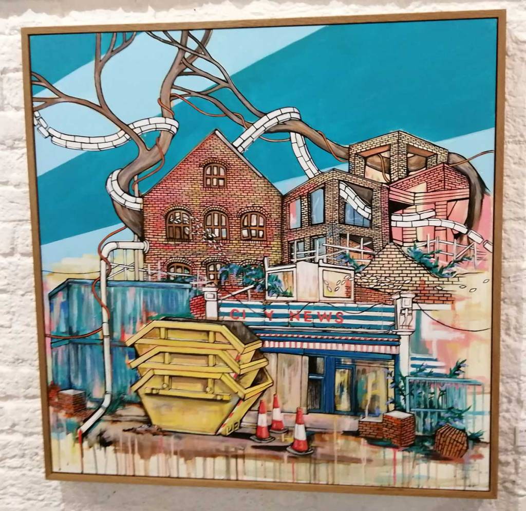 As a body of work, as one whole thing, as an exhibition The Modest Magnificent might not be throwing down any massive challenges, it might not be offering anything revolutionary, and yes, not everything in here works, but this is a very (very) good show (and does it always have to be revolutionary?). This is an exhibition alive with interesting work, with some very good art (with some maybe not so good). Overall, this is a very good show, this is a good looking show, and yes, well hung. That pink bear ushering us in along with those yellow balloons that draw us in past the Zabou piece painted out front of the arch (Zabou is getting very photorealistic these days). It feels healthy in here on Sunday morning, healthy amounts of people, doors wide open, a welcome offered, something missing at so many of the more formal, more aloof galleries, and it is good to see Well Hung stretch out like this, their own Hoxton space is rather small, this is a strong statement from the gallery (again)
