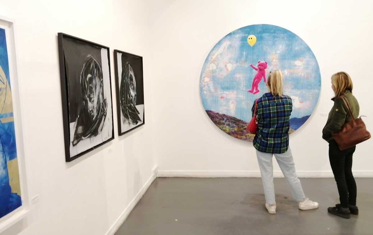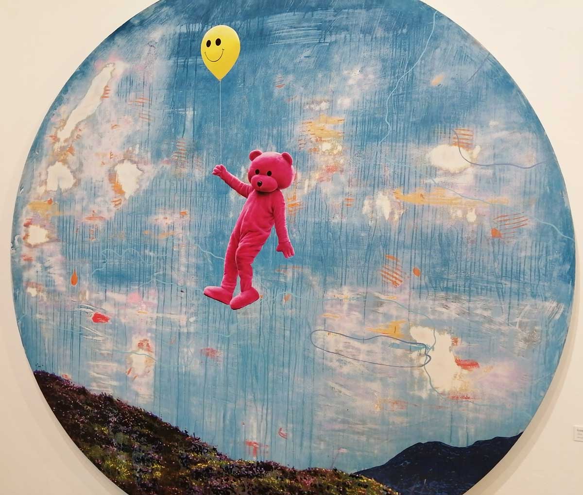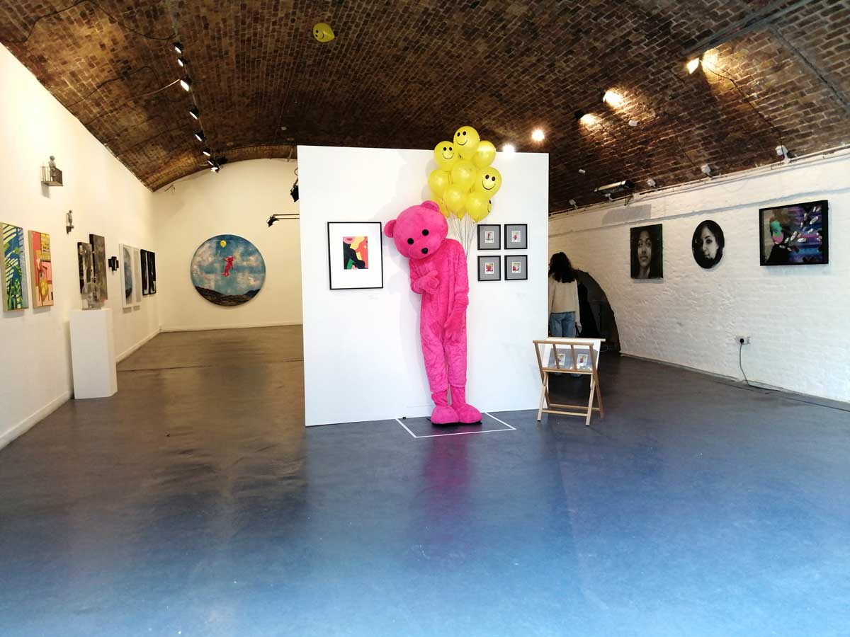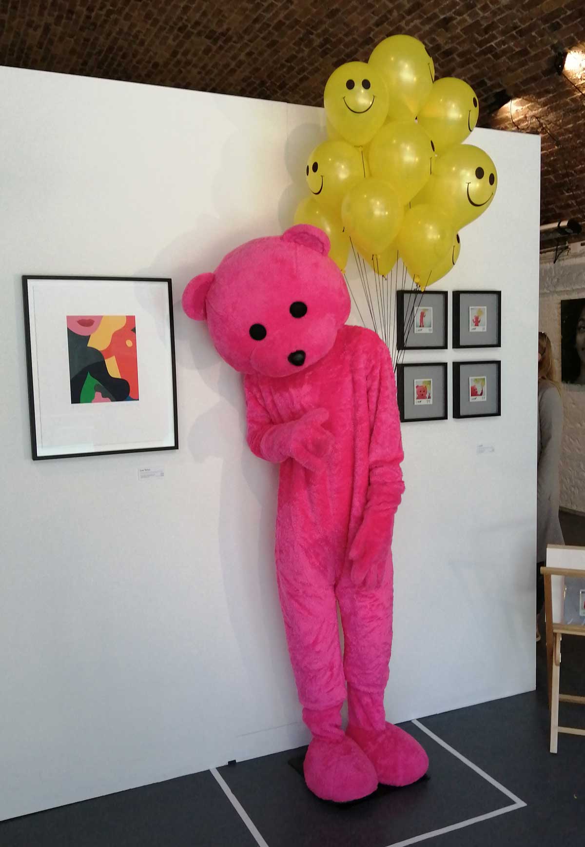 As a body of work, as one whole thing, as an exhibition The Modest Magnificent might not be throwing down any massive challenges, it might not be offering anything revolutionary, and yes, not everything in here works, but this is a very (very) good show (and does it always have to be revolutionary?). This is an exhibition alive with interesting work, with some very good art (with some maybe not so good). Overall, this is a very good show, this is a good looking show, and yes, well hung. That pink bear ushering us in along with those yellow balloons that draw us in past the Zabou piece painted out front of the arch (Zabou is getting very photorealistic these days). It feels healthy in here on Sunday morning, healthy amounts of people, doors wide open, a welcome offered, something missing at so many of the more formal, more aloof galleries, and it is good to see Well Hung stretch out like this, their own Hoxton space is rather small, this is a strong statement from the gallery (again)