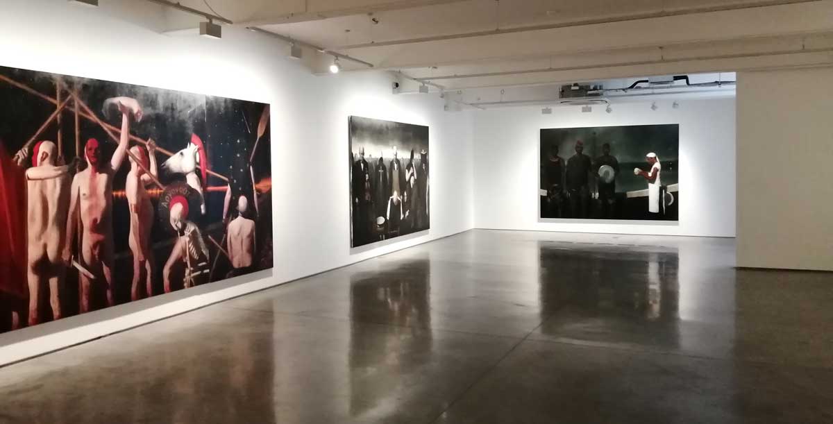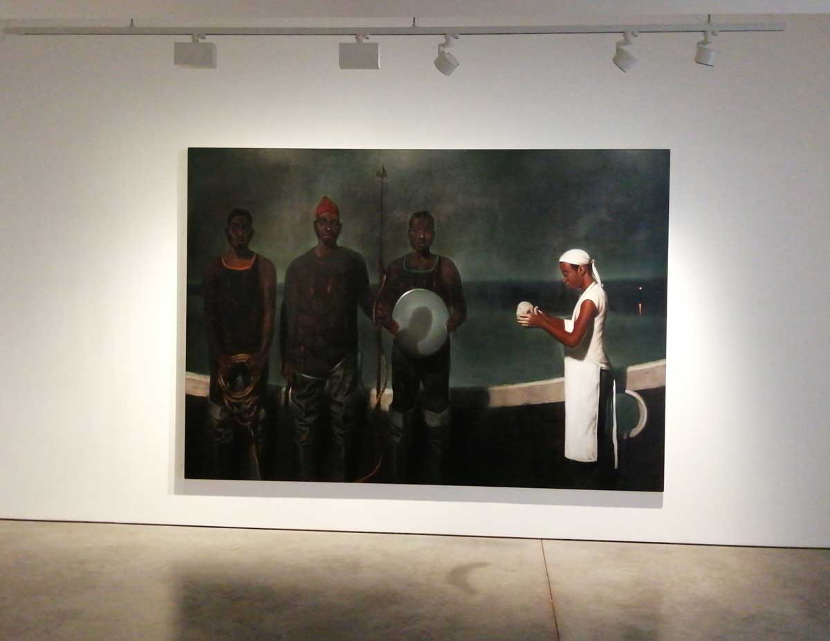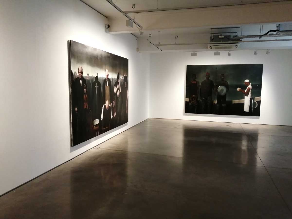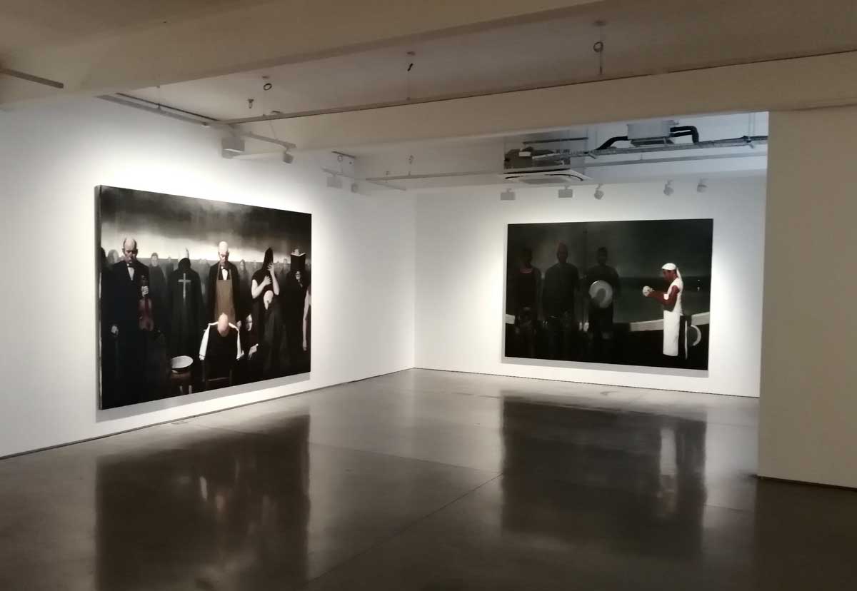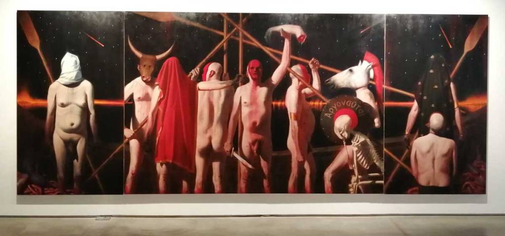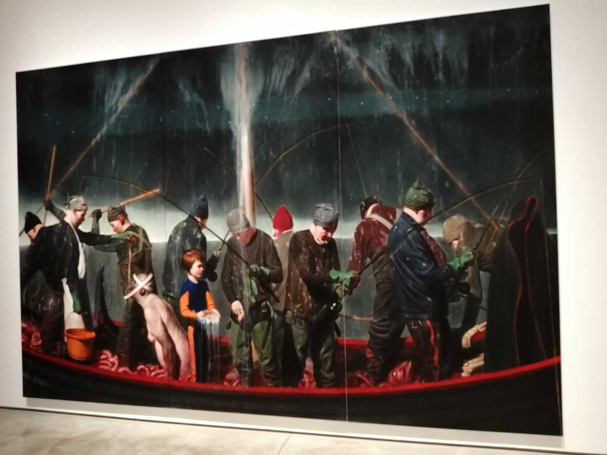 Ken Currie, Black Boat at Flowers Gallery, Kingsland Road, East London (until 5th November 2022) – Taking photos (on a standard issue camera phone) in Flowers is almost infuriatingly impossible, the lighting in terms of viewing art, in terms of atmosphere, in terms of just standing there, is perfect, it doesn’t allow for decent photos and I’m reluctant to actually share these frankly piss-poor images with you but you see, I knew this Ken Currie show was going to be good, I was expecting something powerful but wow! I really wasn’t prepared for that sharp intake of air and that rather audible “Wow!” upon turning the corner into the main gallery area! This really is a wow and a whoosh, breath taking drama.