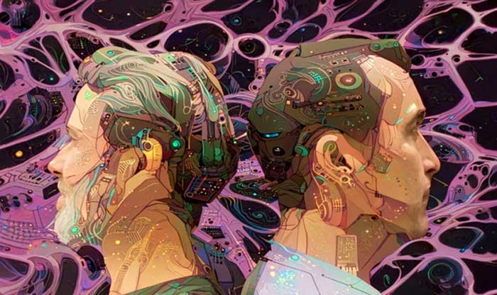 The album artwork and press photos were created using a myriad of AI technology, Image Synthesis and OpenAI’s DALL·E, which can be seen in action here. Expanding on the same theme using AI/AR mechanisms, these will be followed by videos and a graphic novel, building into a whole Falorxian planet”.