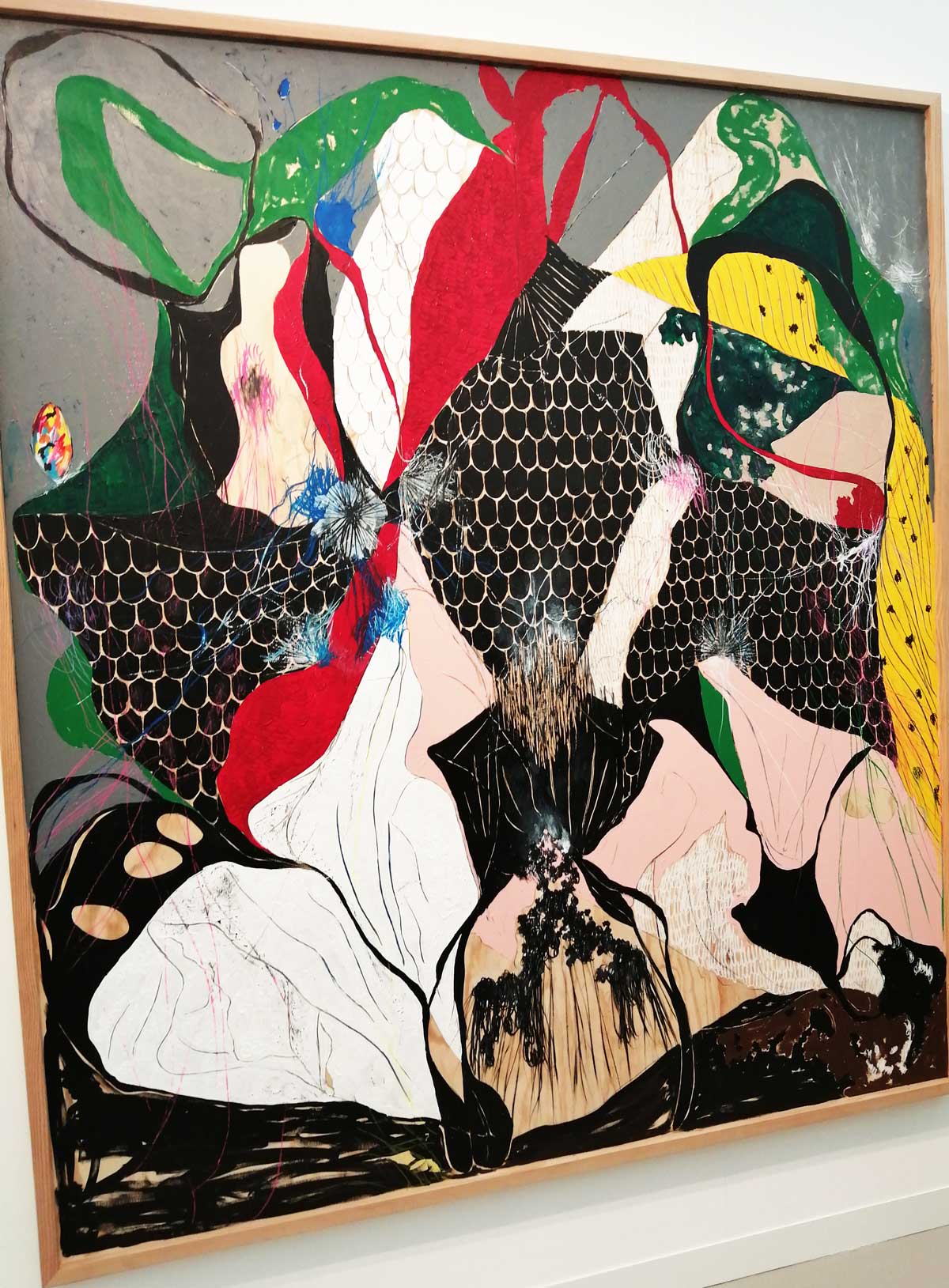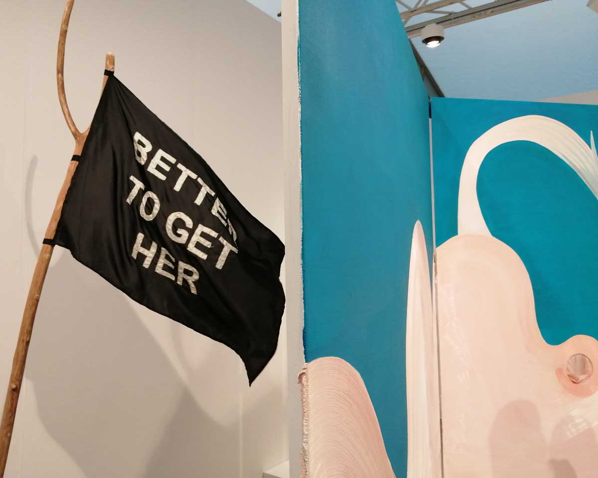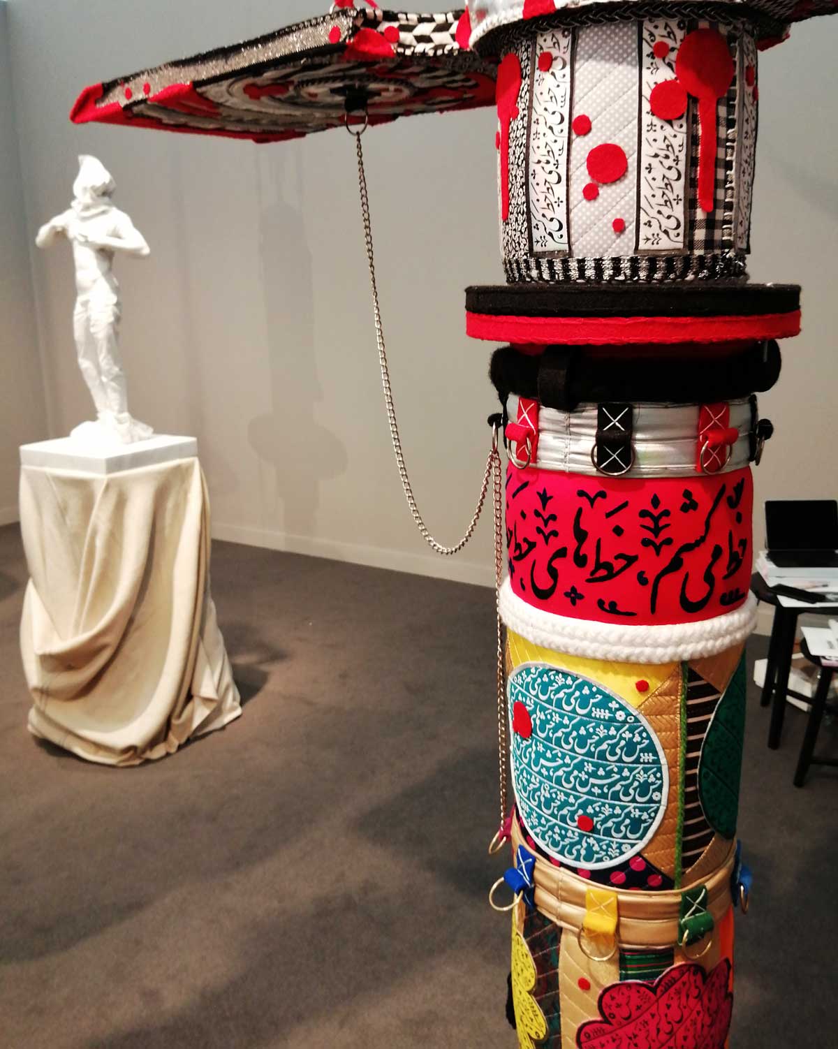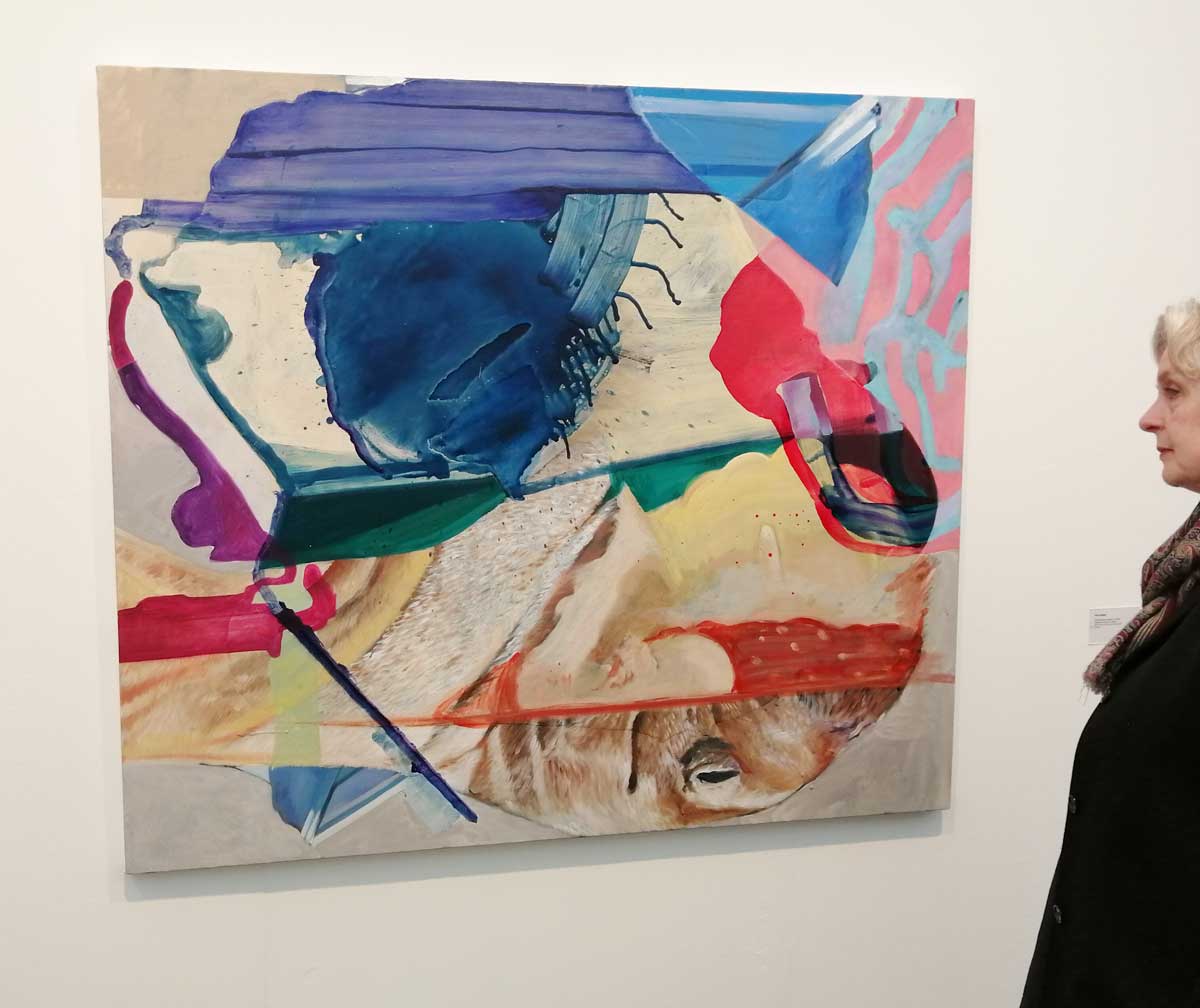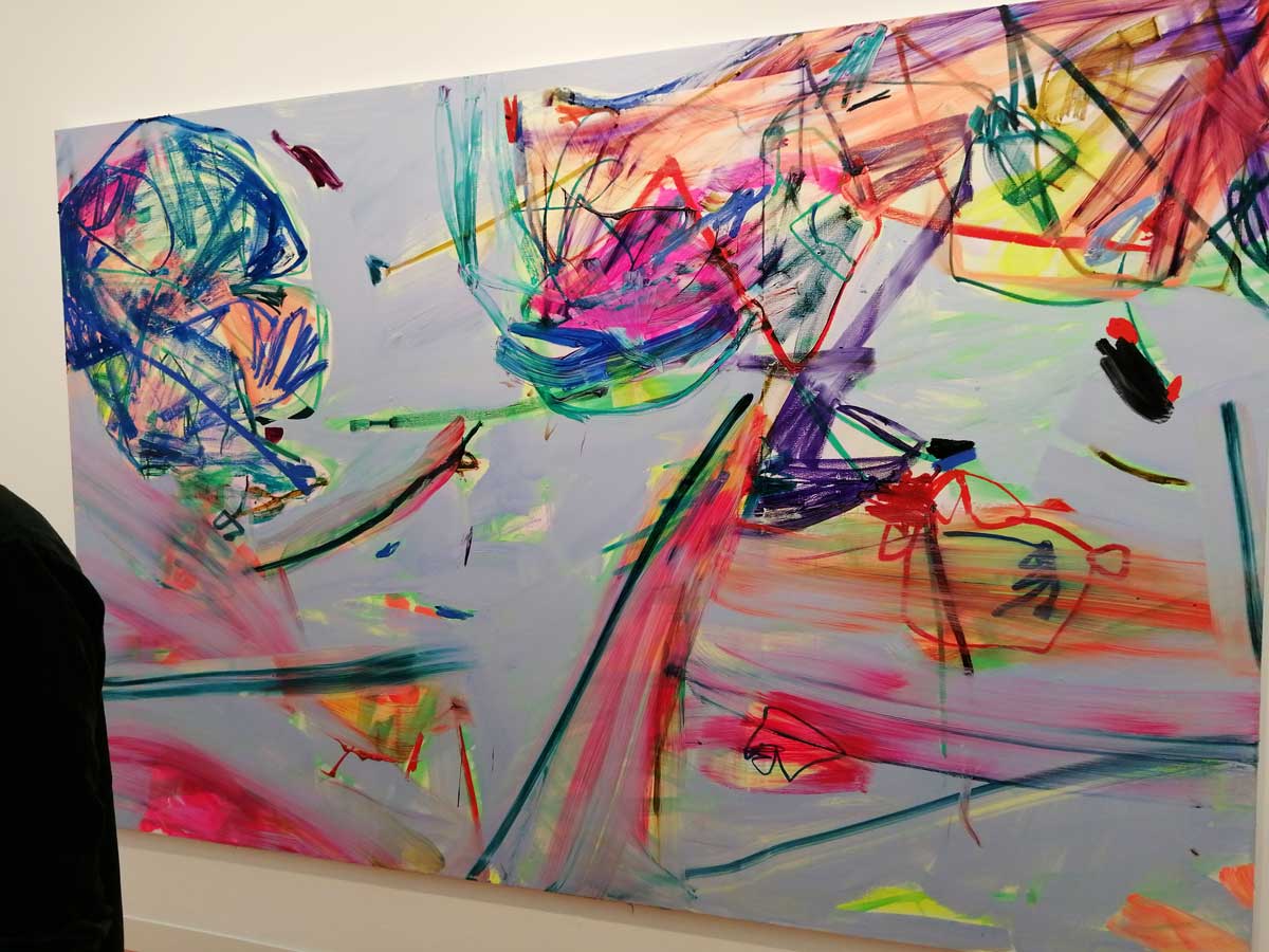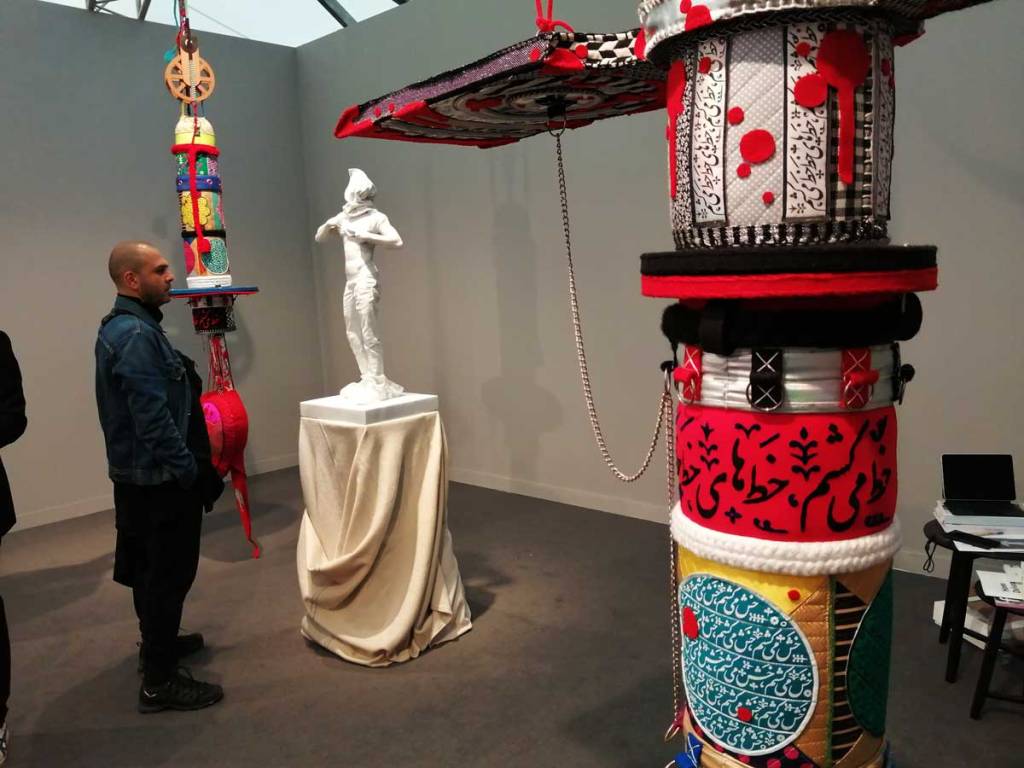 It had been a little slow until Jeffrey Gibson, we knew Gibson’s brightness was coming, we had caught glimpses in the advance publicity we had mostly tried to avoid. There had been good things before that, how could there not be with a beast this big? How could there not be with so many galleries, over 280 galleries from 42 countries (one country short!), of course there’s lots of good art in here. There’s a group of paintings presented by Addis Fine Art, a gallery of both Addis Ababa and London, a group of paintings by Selome Muleta – “one of the most exciting young female artists to emerge from the Ethiopian visual arts scene in recent years, Selome merges portraiture with still life in a meditative exploration of womanhood and interiority” – her paintings are full of so much, they quietly stand out, if you give then the chance in the noise of it all, they quietly pull you in, the faces, the colour, the way the paint is used in such a powerfully positive way, the cats, actually Selome’s paintings really stand out.