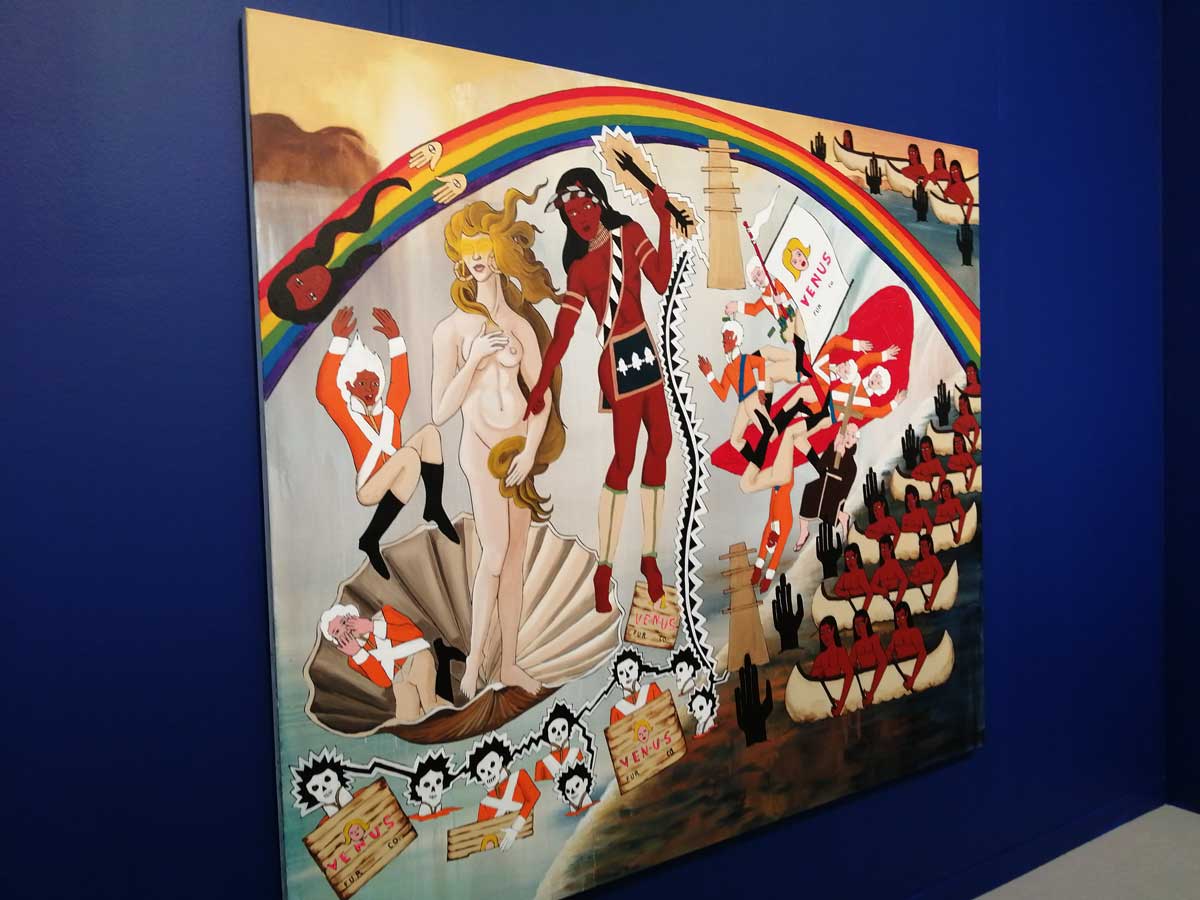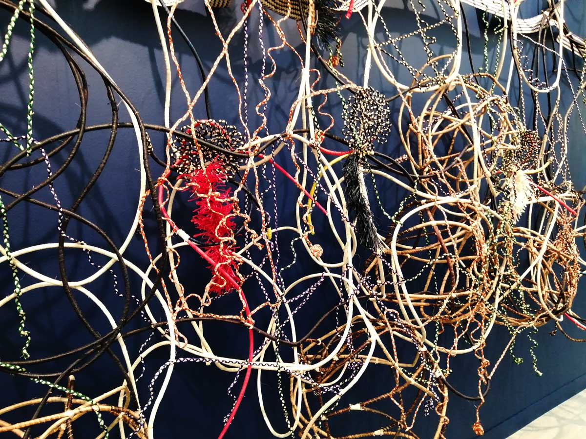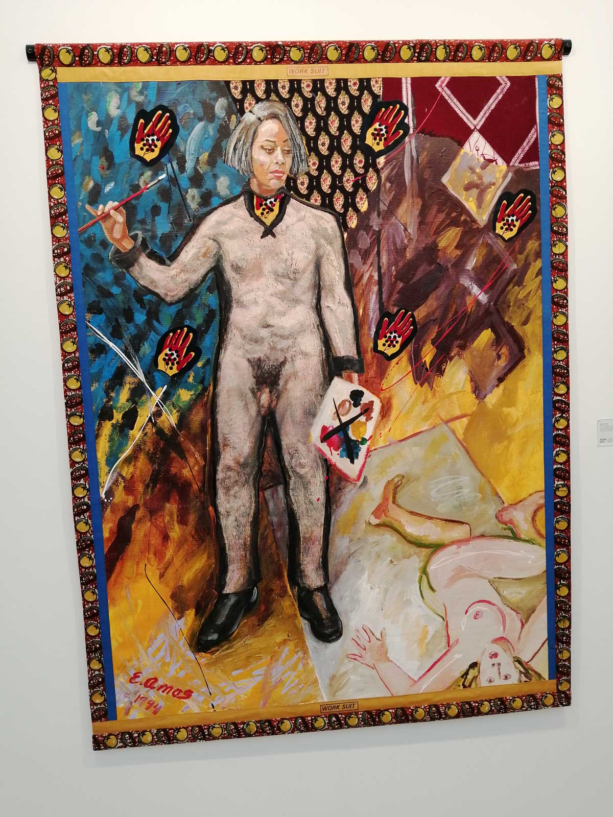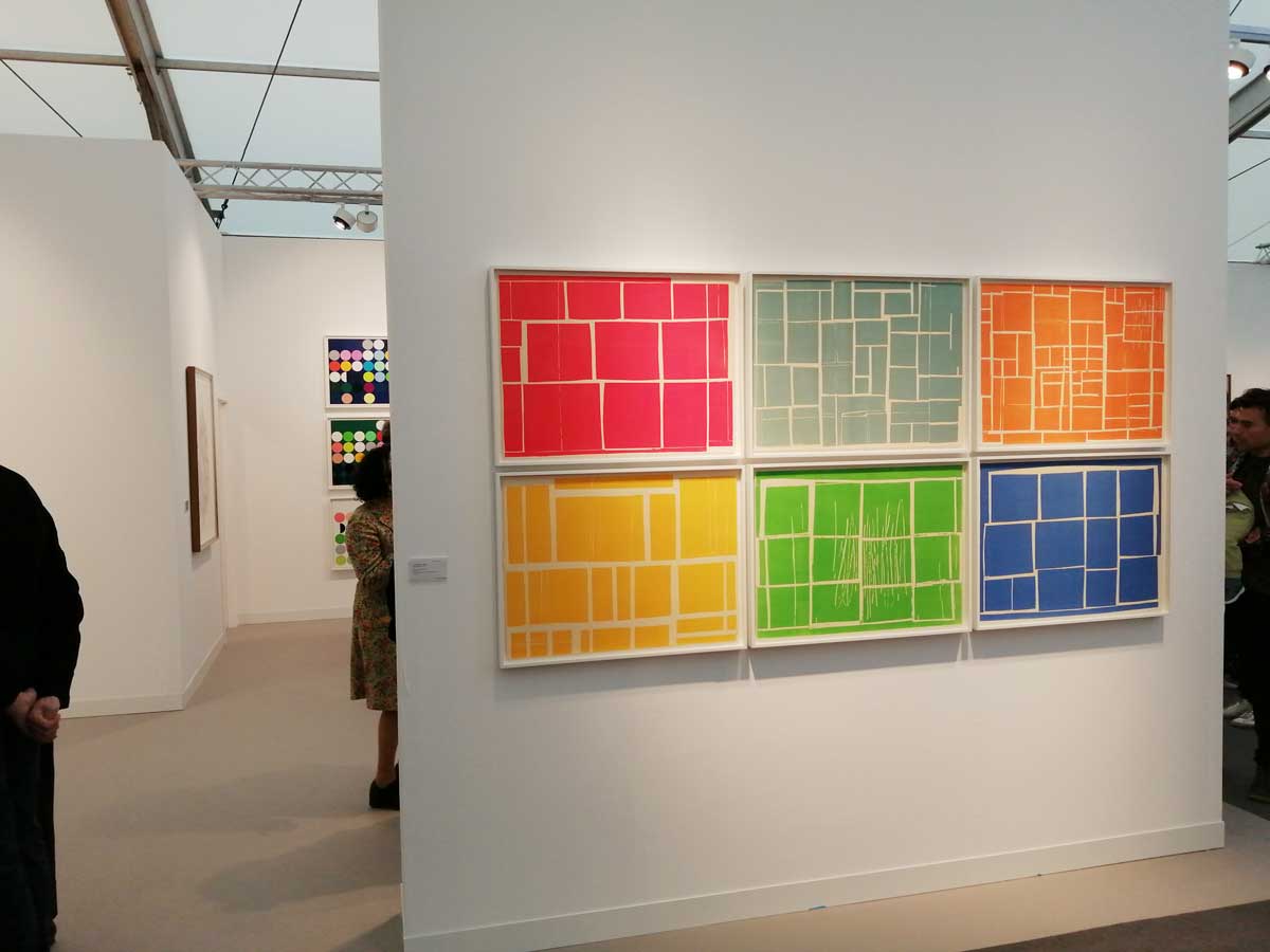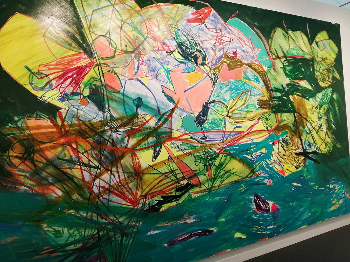 It had been a little slow until Jeffrey Gibson, we knew Gibson’s brightness was coming, we had caught glimpses in the advance publicity we had mostly tried to avoid. There had been good things before that, how could there not be with a beast this big? How could there not be with so many galleries, over 280 galleries from 42 countries (one country short!), of course there’s lots of good art in here. There’s a group of paintings presented by Addis Fine Art, a gallery of both Addis Ababa and London, a group of paintings by Selome Muleta – “one of the most exciting young female artists to emerge from the Ethiopian visual arts scene in recent years, Selome merges portraiture with still life in a meditative exploration of womanhood and interiority” – her paintings are full of so much, they quietly stand out, if you give then the chance in the noise of it all, they quietly pull you in, the faces, the colour, the way the paint is used in such a powerfully positive way, the cats, actually Selome’s paintings really stand out.