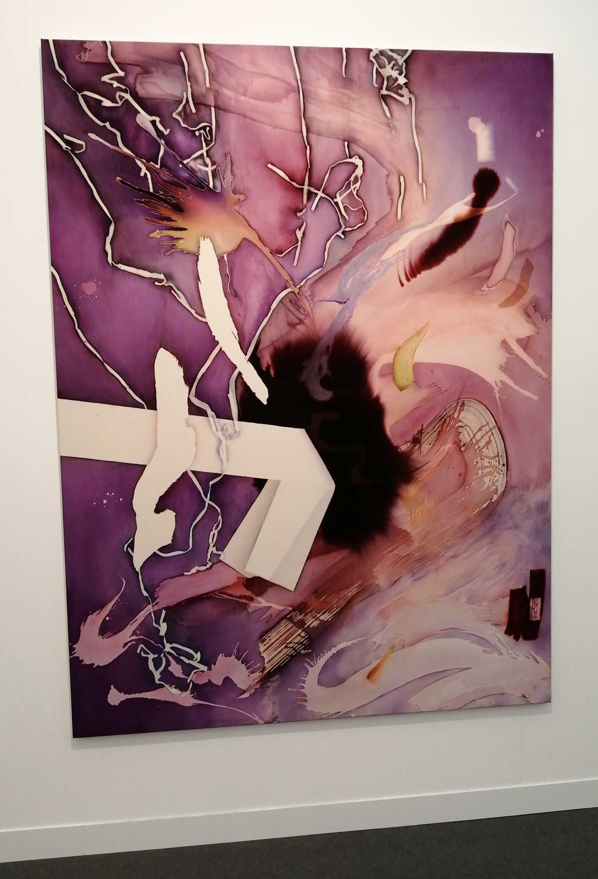 And almost inevitably, Gagosian have done it again, there they are in their big dog spot laying down a marker with some big bold Jadé Fadojutimi paintings and handing out a a challenge to everyone else again from their now traditional spot by the main entrance – pissing contest won once more by the gallery and the energy of those large Jadé Fadojutimi pieces that really do ignite the booth with an almost immersive zest, those seven big paintings turn the environment into something that almost envelops and cuts you off from everything else that’s happening all around you, there may be paintings everywhere and while you’re still wheeling from the experience of walking in and being called from the left of the right, these seven paintings do grab you. They did it in 2019 with that set of Sterling Ruby‘s big yellow paintings, and Gagosian do it yet again here, Fadojutimi’s paint flows, it slashes, it cuts, her movement excites, her work is alive with an almost timeless energy, it really is exciting. Those seven paintings demand, they engage, and yes, they hold you, they don’t let you go, they may be making a lot of noise, they may zing, but there is so much depth here. Are we seeing growth? Fresh layers? She is compelling, they are compelling and yes, they are maybe a touch confrontational, mostly she’s just exciting and that’s why we’re here. These are supposedly the biggest and best galleries the world has to offer, Jadé Fadojutimi‘s paintings have got us off to an excellent start, come on then, bring it on, excite us, hit us with more of it, come on, let’s ‘ave it!