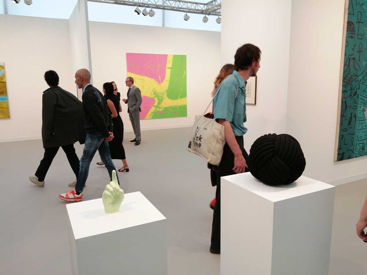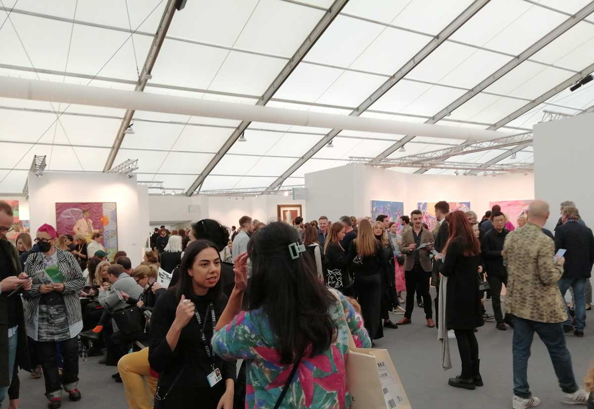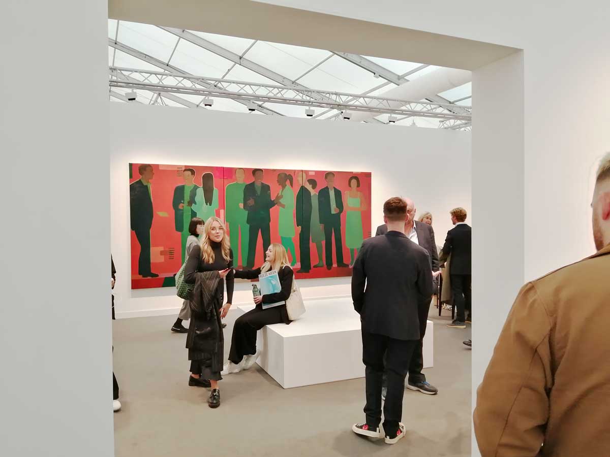 Hey, Pop Art imagery is thin on the ground this year as well, did we really (thanfully) only see one Mickey Mouse all day? And that street art influence on things, the so called urban artists are pretty much not here is any kind of shape or form this year either (they’ve never have had much of a presence at Frieze, not even a hint this year though). It is mostly refreshingly decent painting, is painting really back in vogue? is ‘proper’ painting back? Is there less cheese maybe? And is there less posing from the galleries this time? Not so many stacks of look-at-me-and-all-I-know books ‘casually’ left on tables, and what about the trophy gallery assistants decorating the booths while their bosses pose in expensive suits and never a tie? Was there less of that crap this year? Is there really less bulshit or have I just got used to it? Gawd, I hope not! Has Frieze developed a collective hint of something we could almost call taste this year? Nah, Frieze has never ever had good taste, does feel like the crap has been cut just a little bit though doesn’t it? That failure on the climate change front is a big fat stinking turd of an elephant poop right there in the middle of the room though, that really is a big pile of steaming bulpoop right there in the middle of it all and there surely should have been an acknowledgement of the wrongs of what is happening to the people of Ukraine right now? Was that just a glaring omission or was it really a case of just not wanting to alienate a Russian art market? There were the poseurs of course, but is it just a little less annoying this year isn’t it? Gawd, I’m not getting used to it am I?