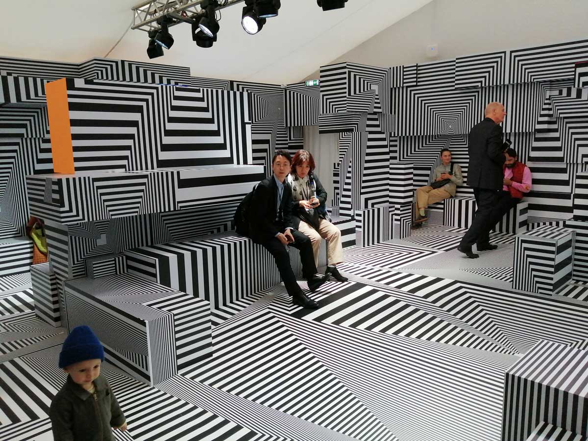 Who are all these people who go to Frieze anyway? There thousands of people in here, it seems even busier this year and this is supposedly the quieter preview day? We’re at galleries most nights, beside one or two people working the booths of the London galleries that are showing here, there’s hardly a familiar face in the gaff? Where do all these people come from and do they ever go to anything else? is this their one art fix of the year? Oh, look there’s the big sponsored black and white op art Tobias Rehberger bit, fun for a moment or two, good to Instagram I guess, better than the corporate Hirst wank of last year but then how could it not be? No idea how much the food or drink was, didn’t dare look, and no idea how much a ticket will set you back? An arm and several legs i imagine? You didn’t think we paid did you? We’re press mate, perks of all this, Blaggers ITA, we’re all in black, Inter City Jibbers, to pay is to fail!