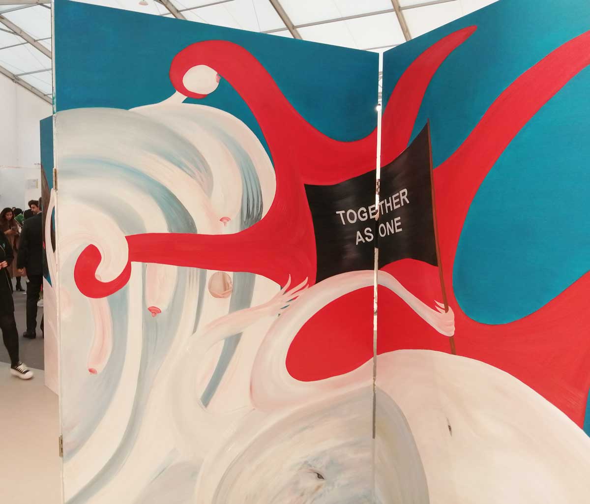 Actually, when you think about it afterwards in the pub you conclude that there’s not much being said about anything much this year at Frieze, there isn’t anything overtly feminist, do we feel we don’t need it now? There’s certainly a lot of strong work from female artists, surely the glass ceiling hasn’t been smashed quite yet though? Are we collectively thinking things are suddenly that much better on that front? There’s not really that much in terms of strong statement about anything really, not a collective statement, of course there is from individual artists, individual pieces, but there doesn’t feel like there are any really big collective statements or points being made about anything much. Is it all rather superficial? No, that would be a lazy thing to say but there are no massive statements and overall, highlights aside, it is all maybe a touch too conservative?