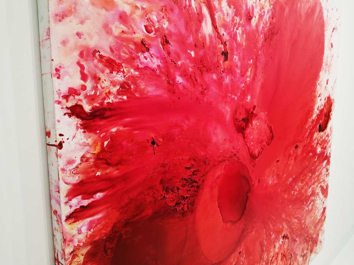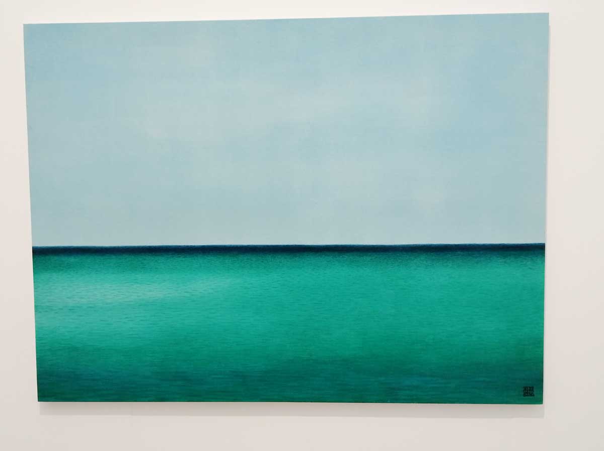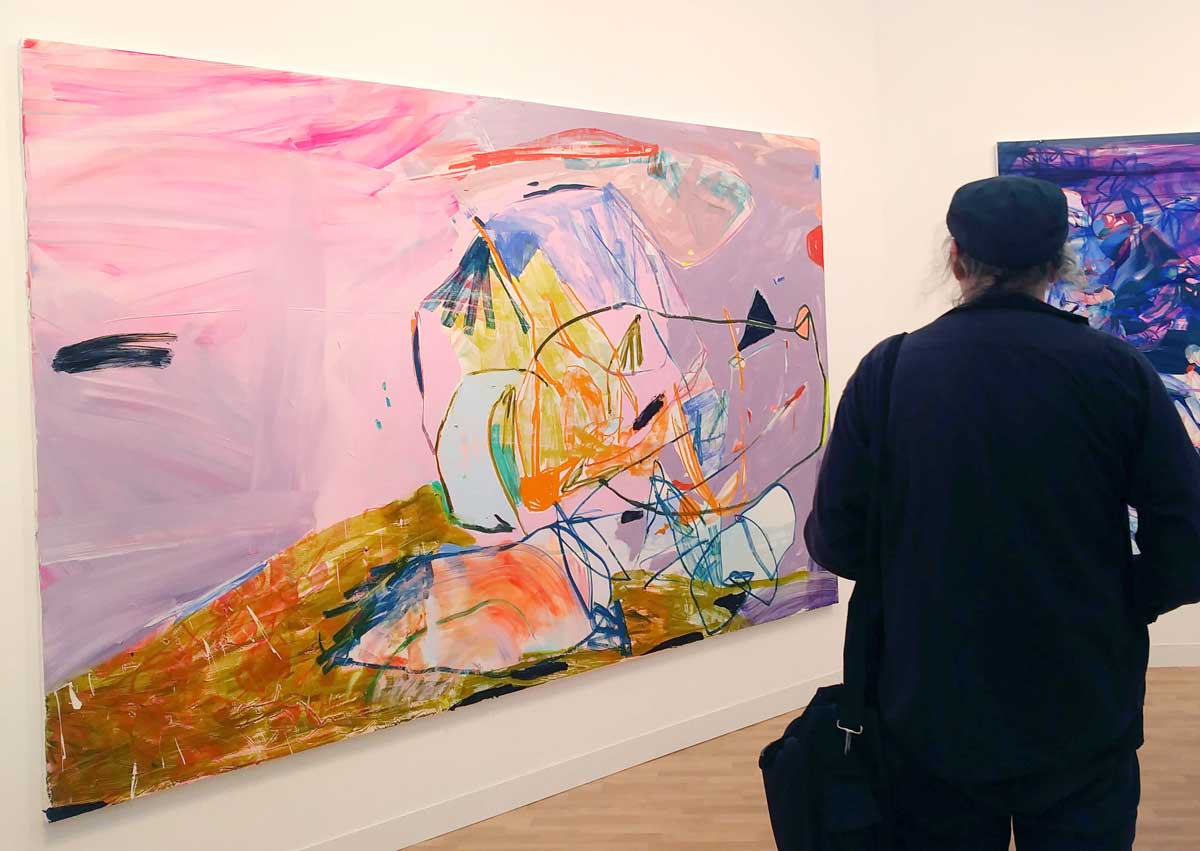 It isn’t all about noise and big dogs and pissing contests though and on your way home to Hackney (via a broke down Lizzy line train, already, that didn’t take long!) you remember that gorgeous smaller (not little, never little) painting, that small painting behind the table that East London’s The Approach Gallery were showing (if only you could get around their table to see it properly), a painting by Tom Allen, Two Reds, an oil painting on a very big 33x27cm canvas. Elsewhere Edinburgh’s Ingleby Gallery deserve a name check (did we name check them last year as well? Pretty sure we did? More about them tomorrow), and there’s a beautifully calming painting from Kim Bohle, a piece called Towards, a painting from 2022, that hits just that point where the sea meets sky, that line that has been painted (many) many times by many painters and captured perfectly here by this one, it really is a beautiful moment of calm in the middle of the noise and the attention seeking of the fair, a painting from Korea presented by Gallery Baton.