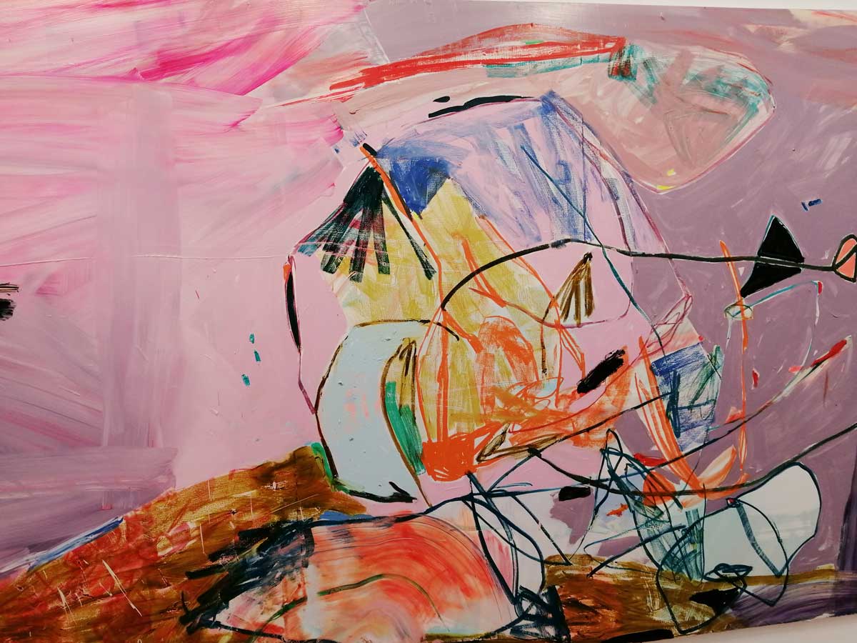 And yes, as we’ve said several times before at previous Frieze gatherings here in London, there’s not that much here that’s any better than, or indeed in many cases as good as the things we see in back street artist-led spaces and studios here in the parts of South or East London where artists are still hanging on. There’s nothing that stands above the things we see in the galleries or at the shows the establishment never go anywhere near (do they even know about them?) Would that Emma Harvey ribbon piece that hung from that big tree in Finchley over in North London last month, or indeed her new paintings that are emerging at the moment, be out of place here? Would (as we’ve said before) a Julia Maddison piece or one of Madeleine Strindberg‘s always challenging paintings (actually Madeleine painted a rather strong Ukrainian flag recently, Frieze could have done with that, I doubt any of these galleries have any idea who she is though do they?). Would a big Melike drawing or one of Mark Burrell‘s seemingly endless pieces or one of those Sofia Martins Gray Polaroid self-portraits that are frankly way way (way) more exciting and out near the edge than the rather boring Polaroids that are actually on the wall at Frieze this year – would any of those artists be out of place here? Do any of these galleries, especially the London galleries who are supposedly here on their own ground, do any of them have the faintest of clues about anything that actually happening under those turned up noses? When did any of them ever go to an artist-led show in an old shop in East London? Actually one of the best things we a today was the show we went to on the way to Frieze, the just opened Lee Maelzer solo show and those beds of hers that say so much, more of that in a moment, Lee is one surely one of the Frieze week highlights?