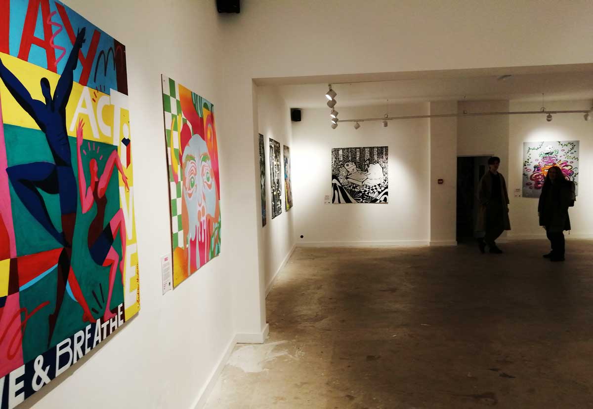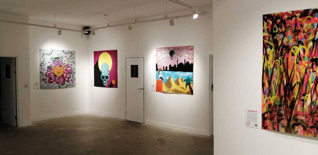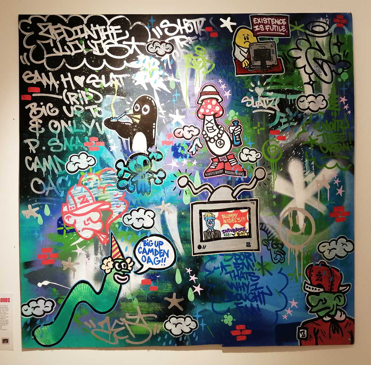 Camden Inspire at Camden Open Air Gallery, October 2022 – Back at the start of September a whole load of artists were invited to come paint on boards set up on the wall on a street in Camden, North London, artists from Wales, from Leeds, from all over London, I came from Hackney, yeah yeah yeah, another damn trumpet blowing review of something I’m part of, I’d say sorry if I was sorry about it, but hey, I’m not. So, back at the start of September we all painted boards on the street as people stood watching, people took photos, people asked questions, people drank beer as well as some strange cocktail that involved Pinky and The Brain, and then we all went back to Leeds or Wales or Hackney or Watford. And then, this morning, while the Liz Truss dalliance was still hanging by a thread, hanging on as almost certainly the most embarrassing Prime Minister we’ve ever had, and she’s had to work hard to win that title, there’s some stiff competition over ther last few painful years from Benny Hill and his Eton mes as well as the smug one from the Bullingdon Club who did something with a pig as well as setting off the whole Brexit mess in the first place and the other one who once ran through a field of corn and we could go further back and that one in the hat who ran off to New Zealand after the whole canal mess, oh yes we’ve had some awful Tories lying and cheating their way to the top and this review or feature or what it was going to be has now fallen off the rails faster than a Kwasi Kwarteng budget plan. Well it really isn’t a review is it? More a case of me telling you about something that happened today and something that’s going on until November 6th in an art gallery in Camden
