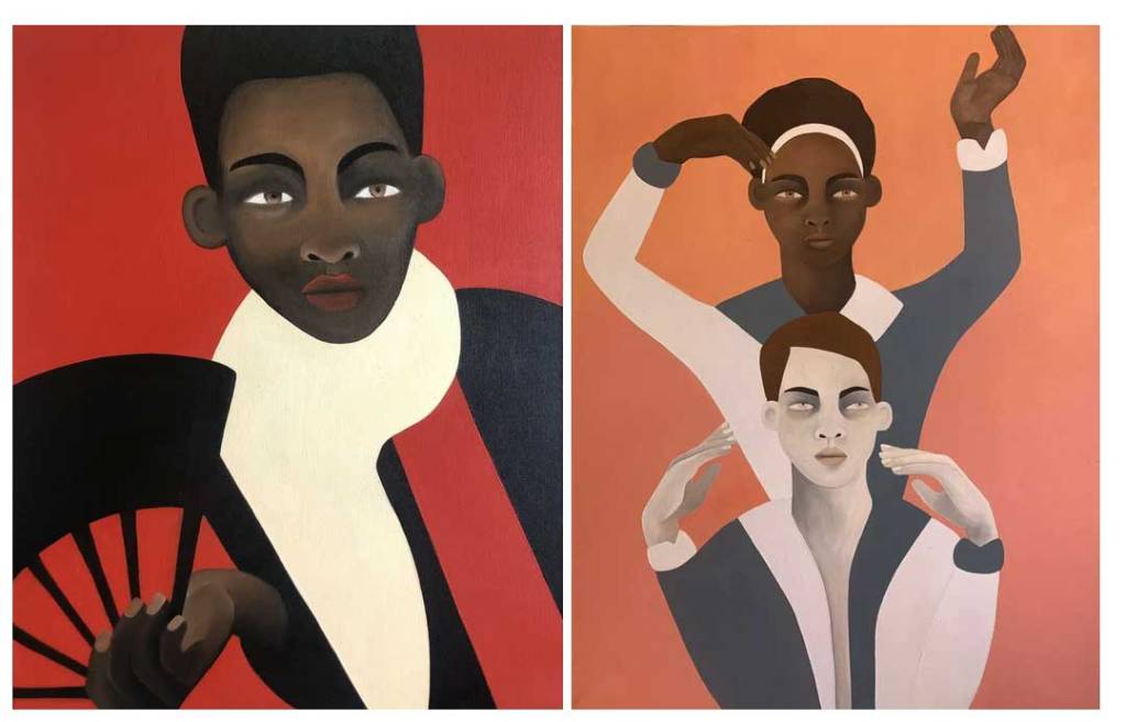 Similarly, the stillness of the image, the smooth surface of the canvas, the balance of shapes and the rich colour tones invite a deep state of contemplation. Though each portrait possesses its own emotional resonance and tension, together, they form a crowd of faces that we are invited to step into and create our own conversations”.