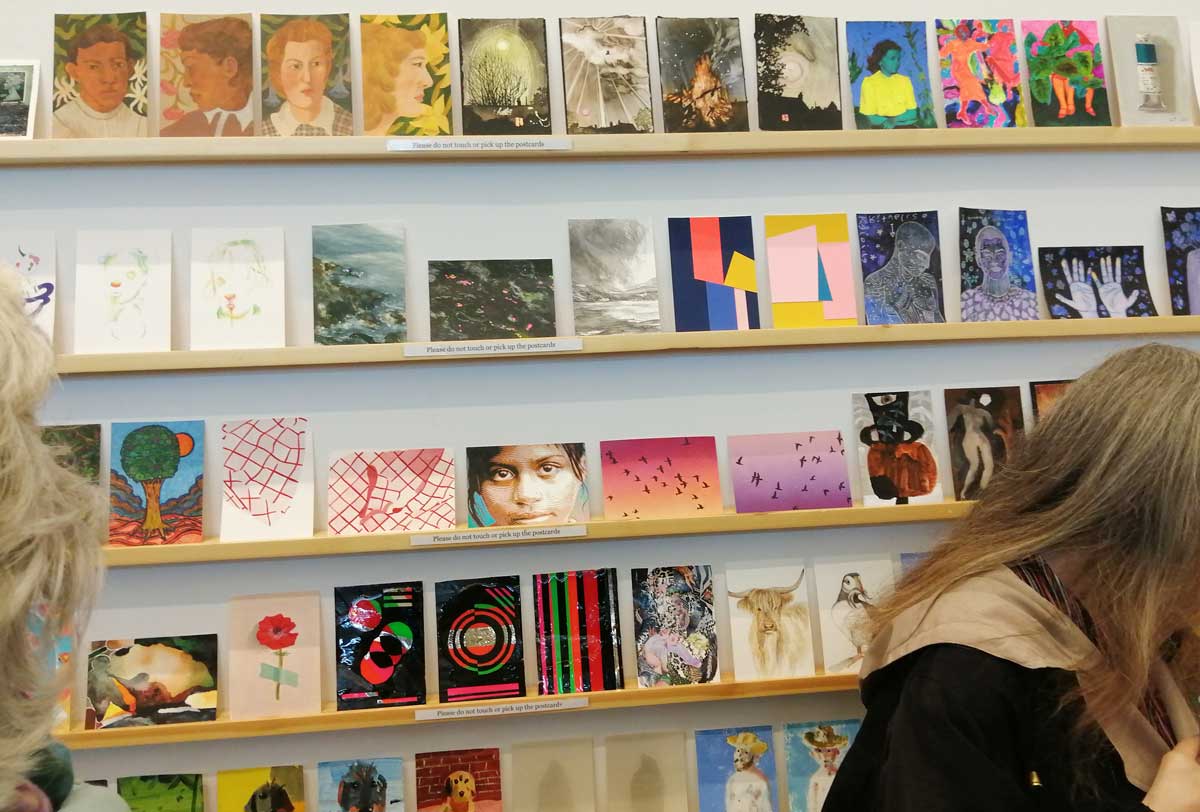Last night was great, it felt exciting, it looked exciting, a real event over in Covent Garden, a great night out, well worth fighting the wind and rain – oh and the juggler with the seven knives over in the Garden itself wasn’t bad either, good to see busking is still a thing over there, busking partly go some of us through art school and helped us survive afterwards. So yes, as an art show the Art On A Postcard viewing last night was strong, a real event, the whole of thing was a triumph, an exciting triumph, as curators Gemma Peppé and her team are going from strength to strength, and all that well before we get to the main reason for it all. Great night, strong event, excellent art show, and yes, well worth checking out the on-line auction if you have a moment, you might even pick up a piece or two from a new artist before the art world dictates their prices shoot up. Great night, great show, great event, great art, great cause, go have a look… (sw)