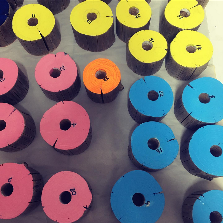 I like the simplicity of the modular components which have infinite possibility, like threading and rethreading the beads of a necklace when you’re a child. All the combinations of shape, size colour, texture. I love their totemic, still upright nature just waiting to be seen and touched. I enjoy the alchemy of upcycling of old utilitarian posts into things of beauty and uselessness. I also like the link between the word post and the object. As soon as the prefix post is used it becomes a time-based piece, time and colour go together well like bread and butter. Posts mark places and identify specifics. But mostly these posts are anchors in a fast and unpredictable world.