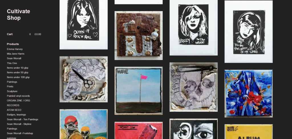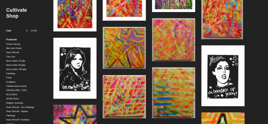 Meanwhile, if you missed the Art Car Boot Fair, you can find lots of the art that does help keep Organ going (selling art is how we pay the bills), you can find lots of art in the Cultivate online shop. You’ll find Emma Harvey’s Riot Grrrl flavoured prints, some of those Electric album paintings and well….